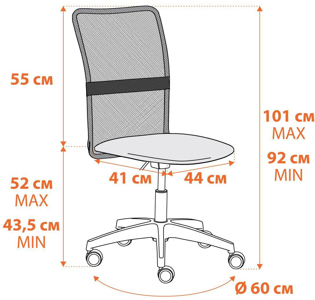Оригинальное компьютерное кресло Start — незаменимый предмет мебели в рабочем кабинете городской квартиры, загородного дома или офиса. Одновременно простая и функциональная модель прекрасно дополнит любой интерьер и создаст в помещении атмосферу комфорта и уюта. Крепкая 5-лучевая полиамидная крестовина диаметром 600 мм устойчива, прочна и надежна. Компьютерное кресло оснащено газлифтом 3 класса с ходом 100 мм, позволяющим настроить нужную высоту. Высококачественные ролики дополнительно прорезинены, не шумят при передвижении кресла и не оставляют царапин на паркете или ламинате. Диаметр штока — 11 мм.
