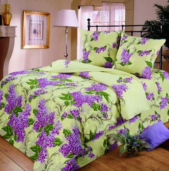 Комплект оказался не таким красивым как на картинке, желтый цвет грязноватый, а сирень скорее красноватая, и ткань жесткая, после стирки села. Но цена соответствует.
