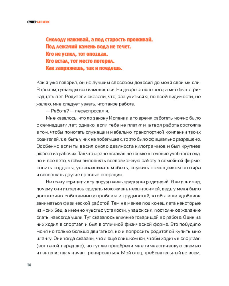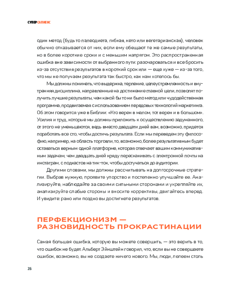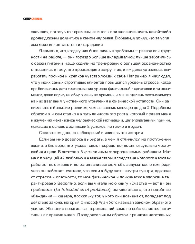Опираясь как на популярные философские системы, так и на последние изыскания современной психологии, автор представляет нашему вниманию концепцию личности «суперсапиенса». Начав с самых простых действий, которые мы можем внедрить в свою повседневную жизнь, мы шаг за шагом учимся быть более активными, дисциплинированными, ответственными и в конечном счете познавать самих себя, чтобы стать своей улучшенной версией. |