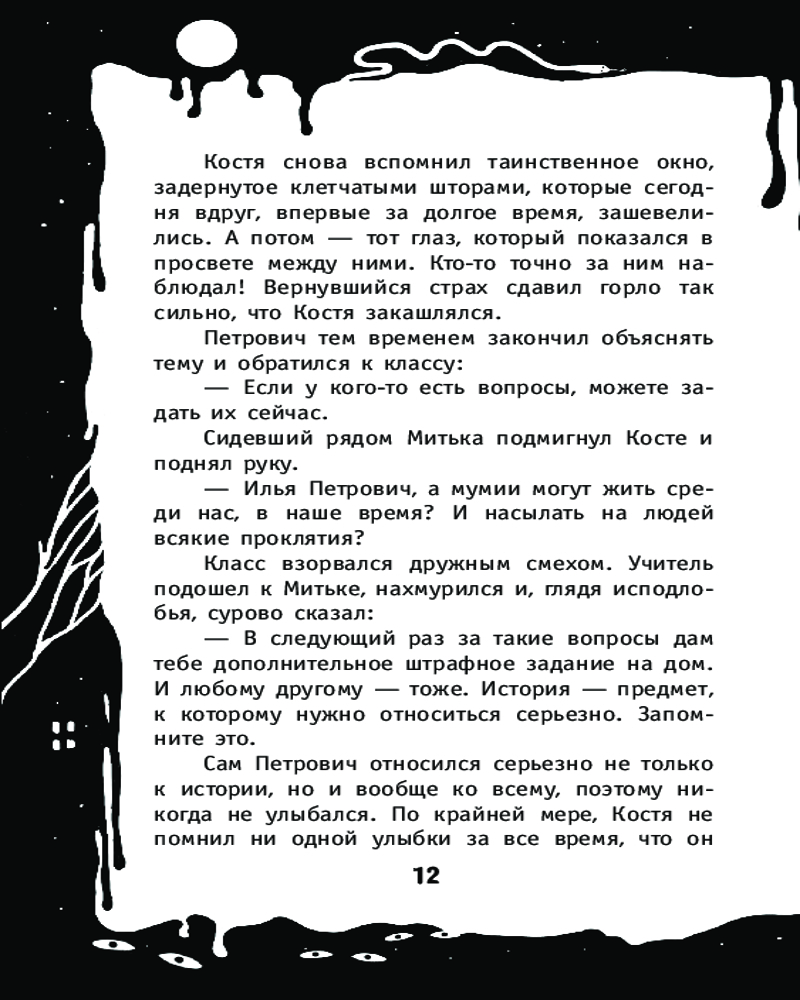 💳 Оплатить за товар можно при получении 🇰🇿 Есть бесплатная доставка по Казахстану от 1 дня 🎁 Копите бонусы с каждой покупки Серия: Самая страшная детская книга Костя Куликов любит заглядывать в окна и узнавать чужие секреты. А еще любит приключенческие книги и историю Древнего Египта. Однажды в окне он видит то, что заставляет его содрогнуться от ужаса и поверить в невероятное. С этого момента его жизнь превращается в опасное и совсем не книжное приключение. Теперь у Кости появляется возможность познакомиться с самой темной стороной Древнего Египта наяву! Ему придется разгадать древнюю тайну, которая долго покоилась в глубинах гробниц, чтобы спасти не только себя, но и других людей. |