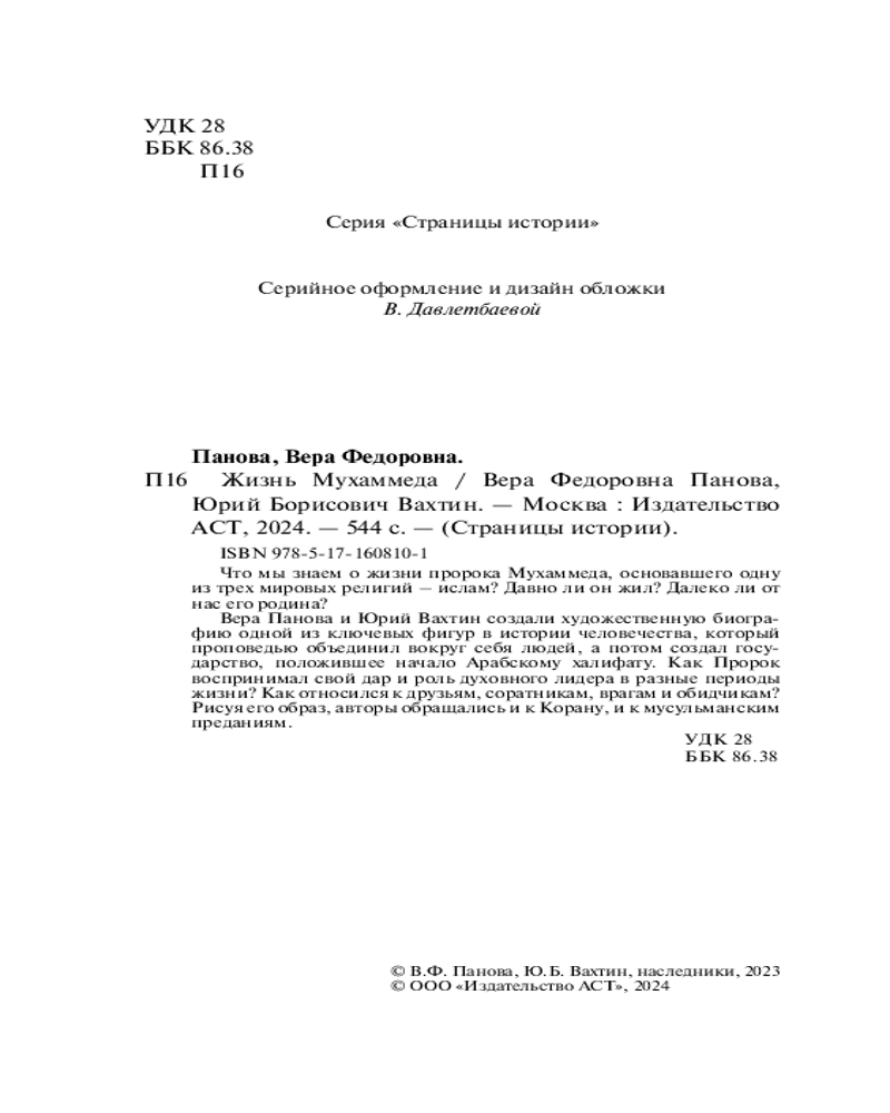 | Жизнь Мухаммеда Вера Фёдоровна Панова, Юрий Борисович Вахтин