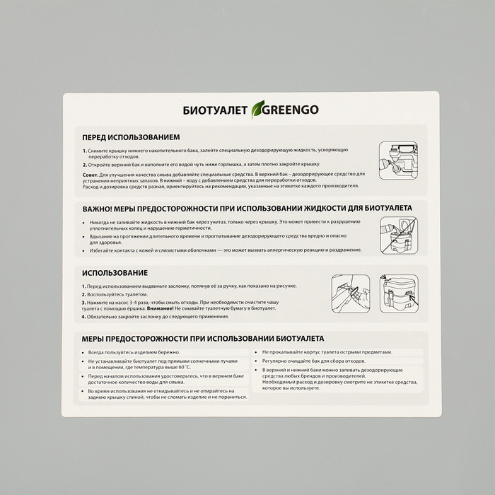 💳 Оплатить за товар можно при получении 🇰🇿 Есть бесплатная доставка по Казахстану от 1 дня 🎁 Копите бонусы с каждой покупки Биотуалет «Greengo» пригодится, чтобы обустроить туалет на даче, в походе или любом другом месте, где нет канализации. Он сконструирован так, что специальная заслонка герметично закрывает бак с отходами, поэтому неприятный запах не распространяется. |