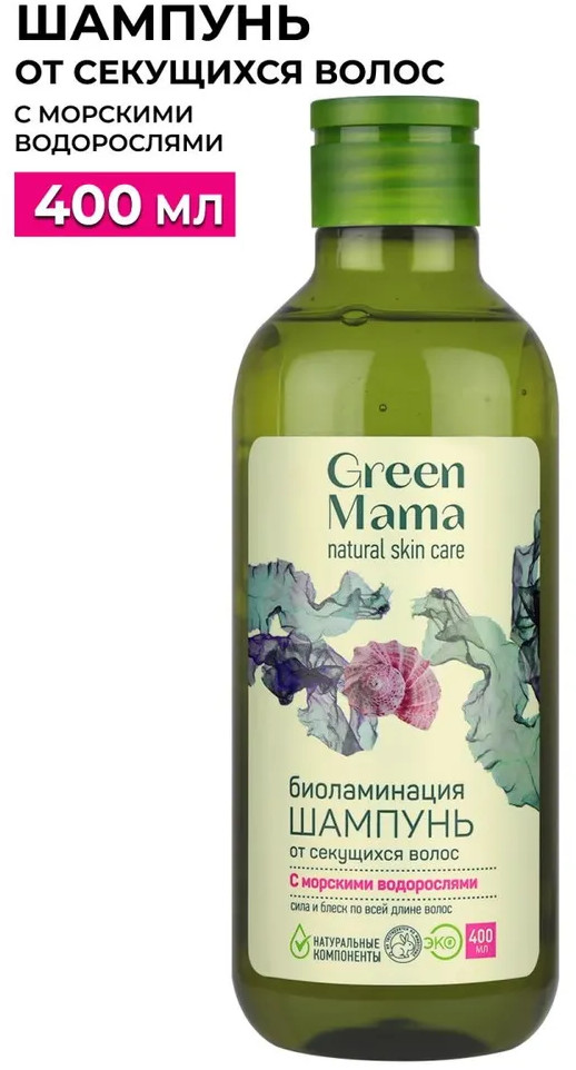 Green Mama Шампунь от секущихся волос с морскими водорослями «Биоламинация»