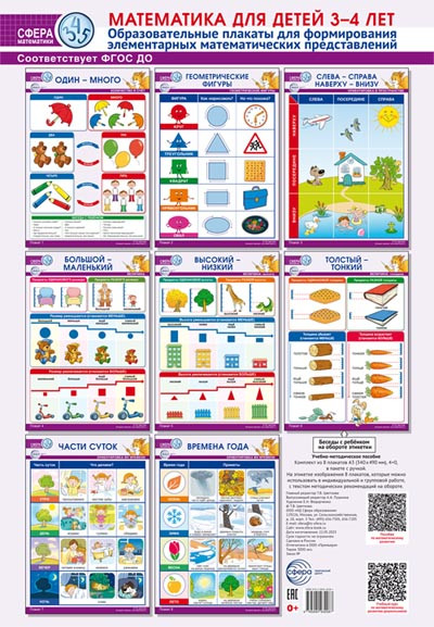 Математика для детей 3-4 лет. Комплект из 8 образовательных плакатов А3+35