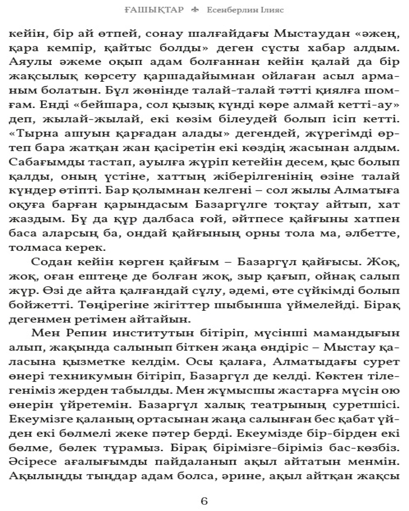 | Есенберлин Ильяс — казахский писатель. Родился в 1915 году в городе Атбасаре Акмолинской области. Его детство и молодость совпали с печально известными событиями 20–30 годов, когда весь народ пережил социальные потрясения, нищету, голод. Для Ильяса этот удар был вдвойне ощутим, так как он рано, в пять лет, остался круглым сиротой. Ильяса отдали в детский дом. Уже там будущий писатель писал стихи для стенгазет. После окончания начальной школы Ильяс уехал в Кзыл-Орду и стал учиться в... |