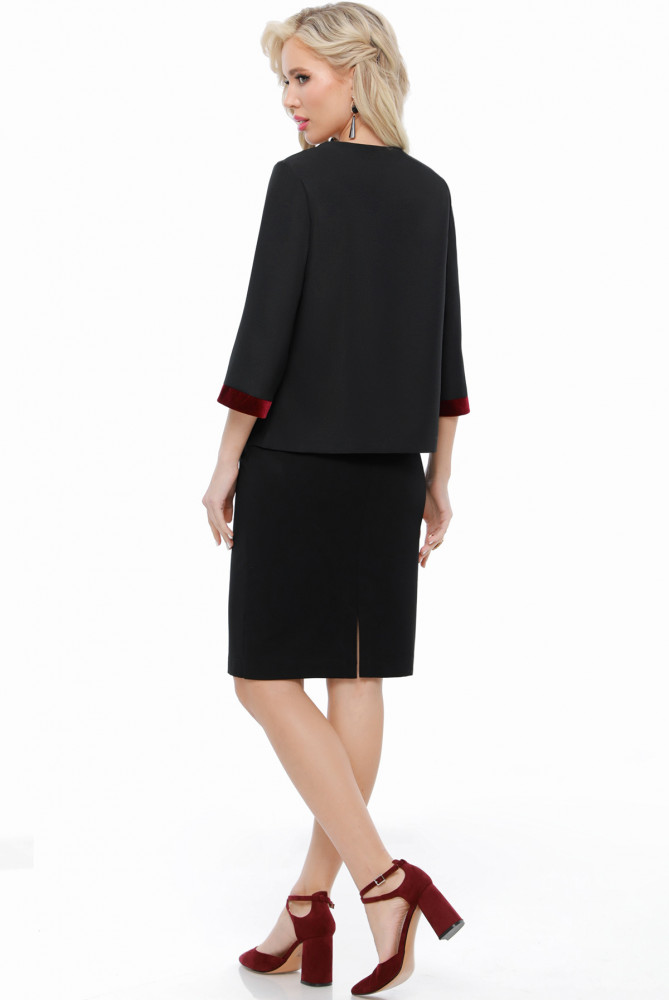 Жакет на мой ОГ=118 пришелся в пору. Смотрится не дешево, а если подобрать некричащую бижутерию, то будет великолепно смотреться и с брюками и с юбкой. Жакет без подклада.Отделка ни красная как написано сайте, а бордовая с фиолетовым отливом.Ткань синтетика.Я довольна!! Благодарю сайт за недорогие и интересные вещи.