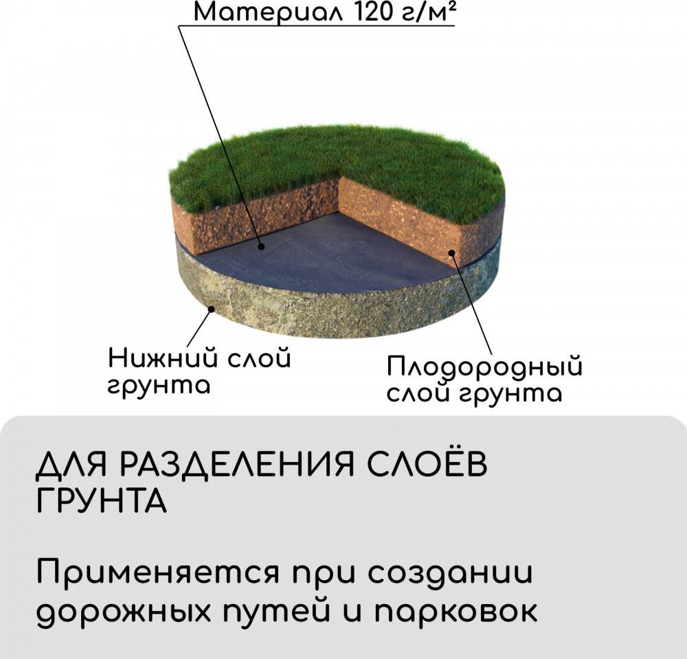 • для разделения слоёв грунта. Материал укрепит грунт при создании дорожных путей и парковок;