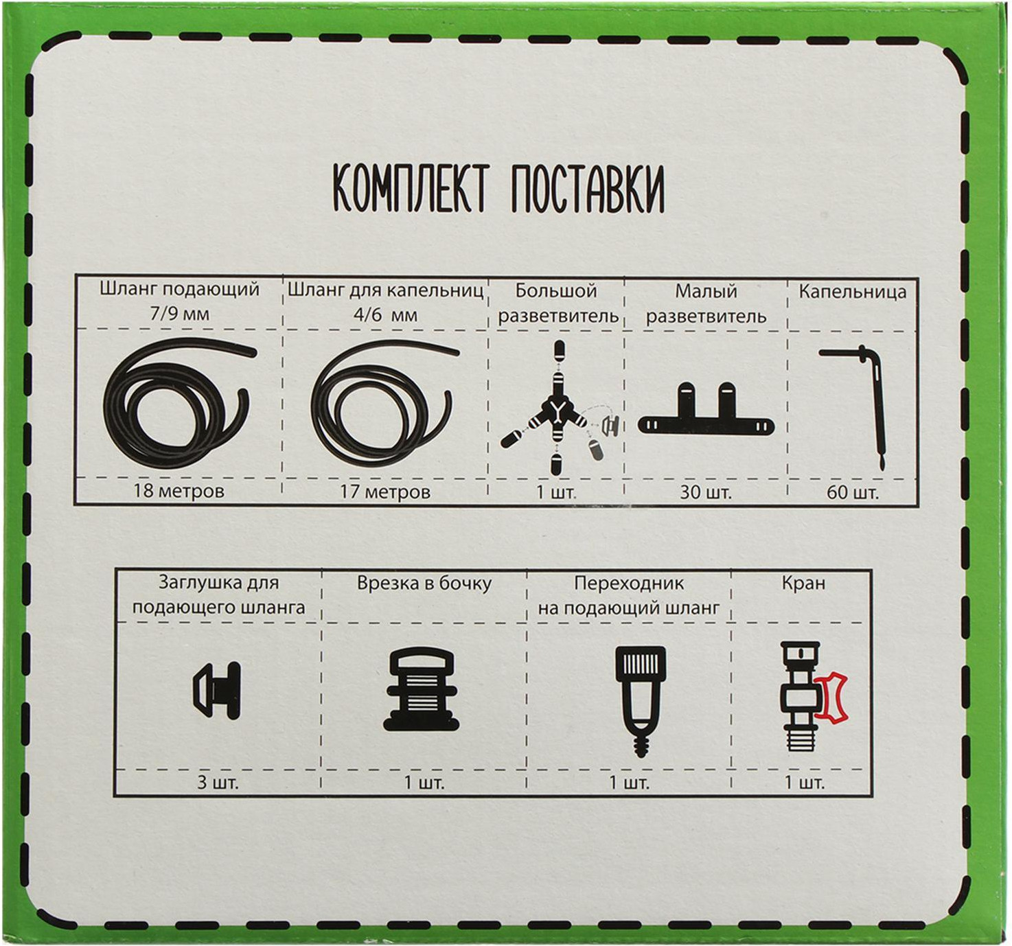 Синьор Помидор Набор для капельного поливаВ данный момент этот товар отсутствует в продаже. Возможно, у нас найдется аналогичный или похожий товар здесь. Набор для капельного полива на 60 растений без автоматики представляет собой комплектующие для организации эффективного и экономичного полива растений. Шланг прокладывается вдоль грядок или рядов растений, а капельницы устанавливаются на концах шланга возле каждого растения для точного и равномерного подачи воды. Этот набор идеально подходит для маленьких или средних садов, огородов и горшечных растений, обеспечивая оптимальное влажностное режим для каждого растения без необходимости регулярного присутствия. |