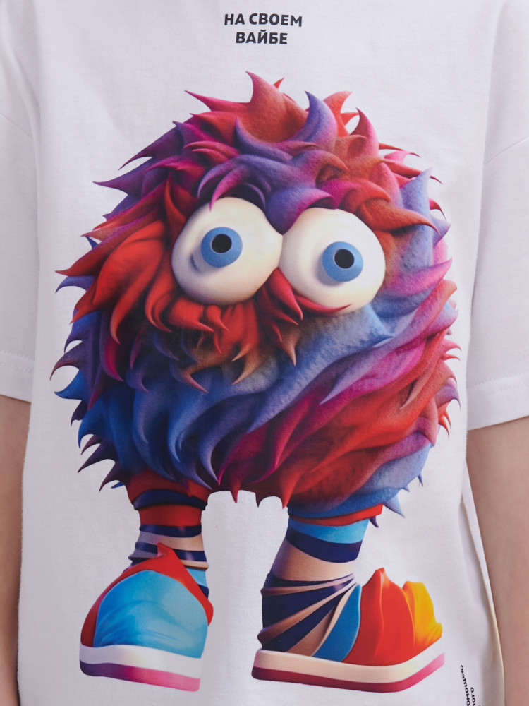 Хорошая, качественно сшитая футболка. Единственное, принт - это термонаклейка, оказалось. Но сама картинка яркая, нарядно смотрится.