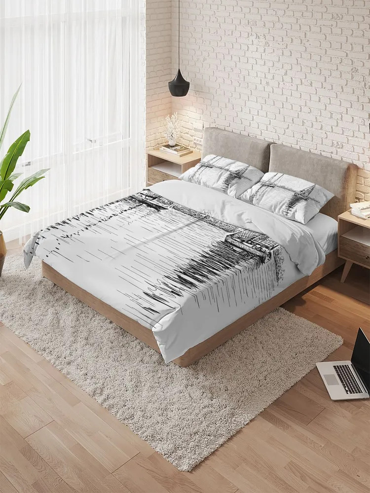 Внимание! Рисунок нанесен только на внешнюю сторону изделий, обратная сторона — белая. При распаковке стильного спального комплекта может присутствовать незначительный запах, связанный с производственными особенностями, который уходит при первой стирке. Яркость рисунка может незначительно отличаться от изображения на сайте.