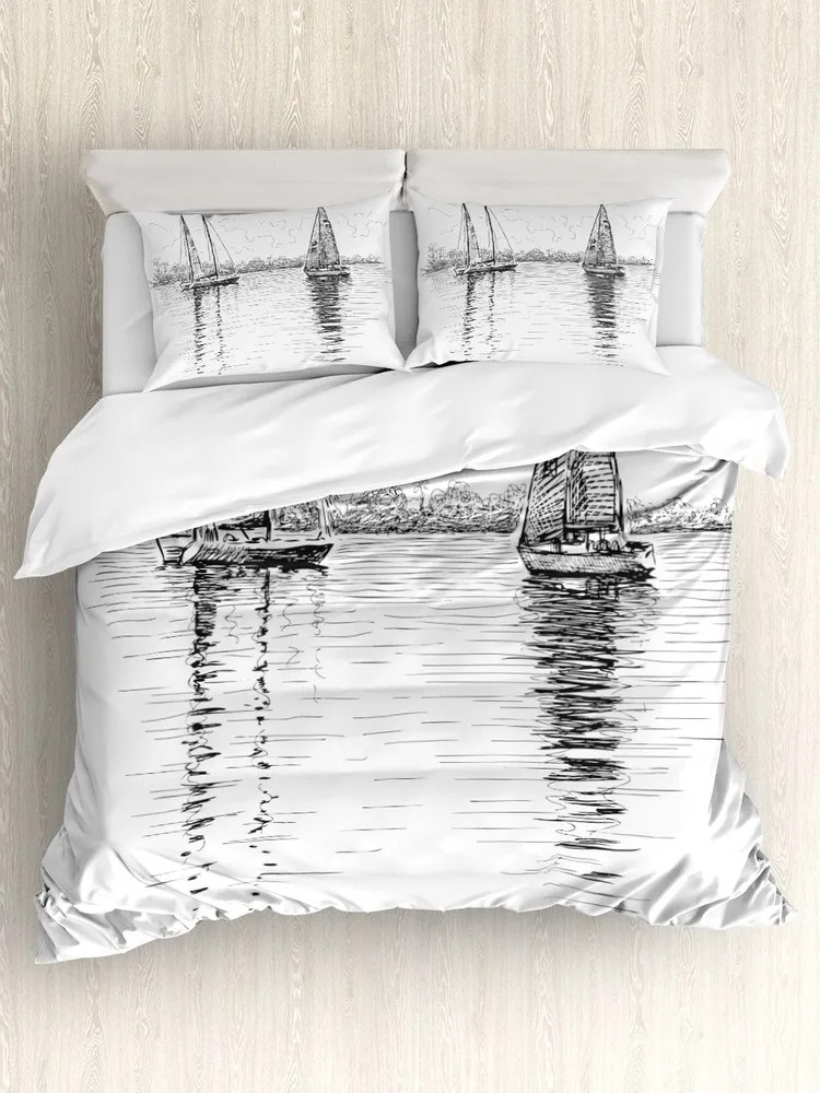 Комплект постельного белья «Графические парусники» | Графические парусники | Ambesonne