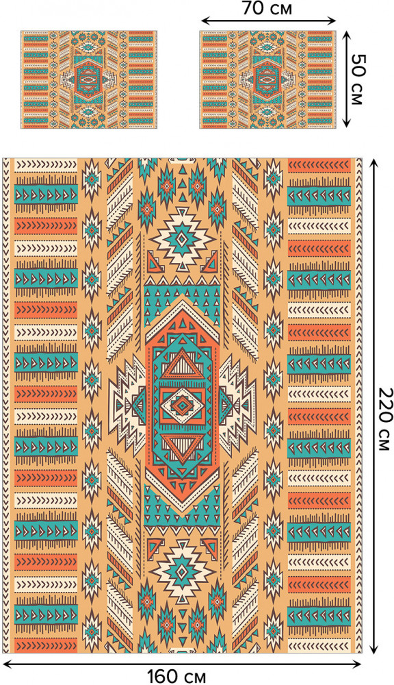 Комплектация: покрывало 160 × 220 см (1,5-спальное), наволочки 50 × 70 см — 2 шт.