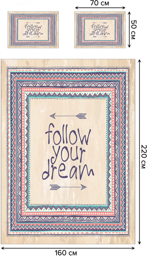 Комплектация: покрывало 160 × 220 см (1,5-спальное), наволочки 50 × 70 см — 2 шт.