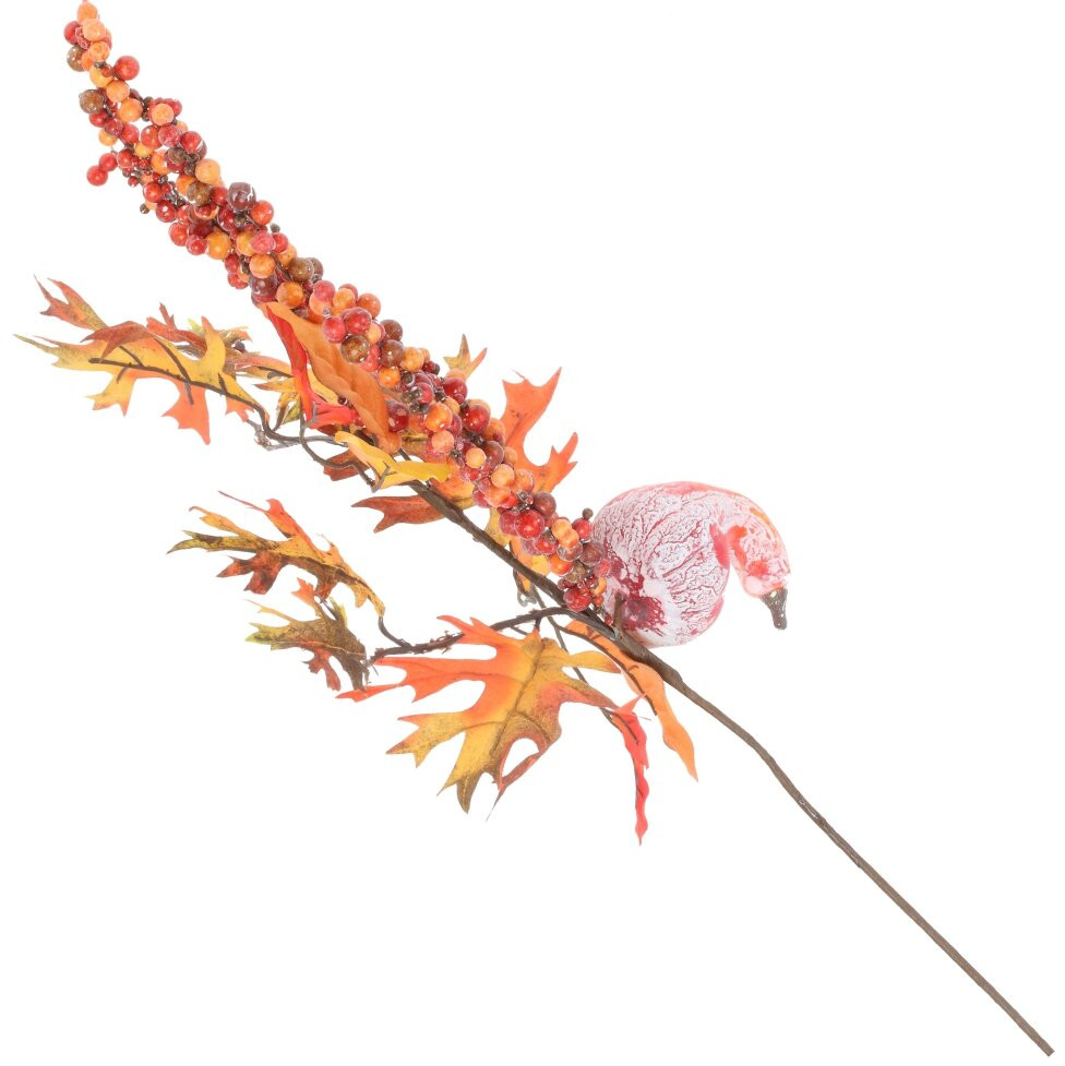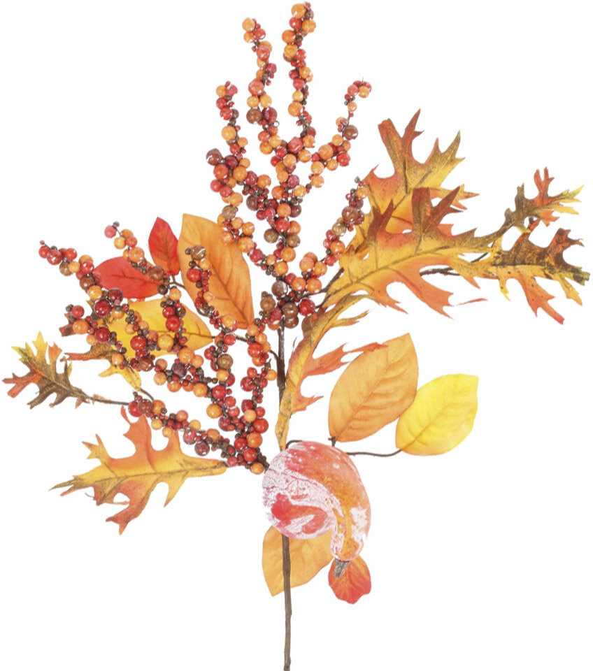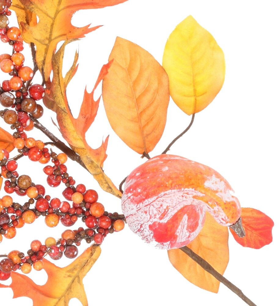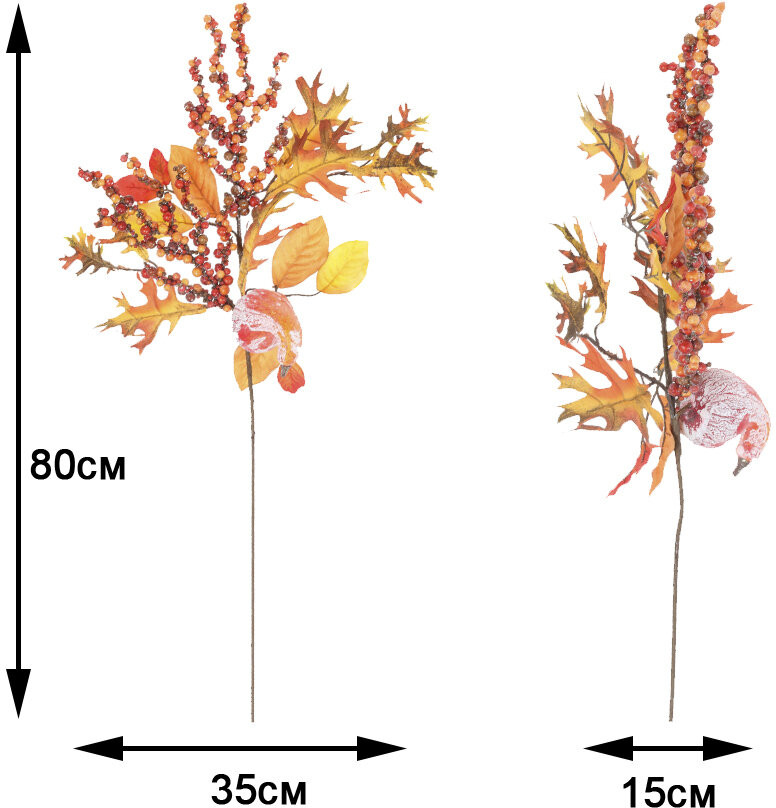 Искусственная ветка создаст яркую, тёплую, солнечную атмосферу осени и станет прекрасным декором вашего дома. В украшении использованы искусственные ягоды, листья, тыквы.