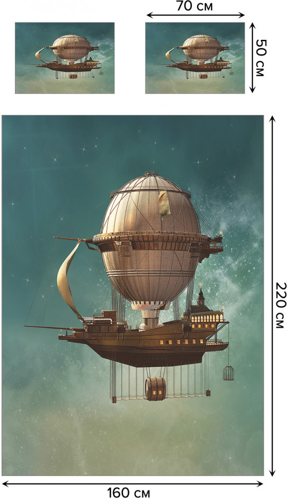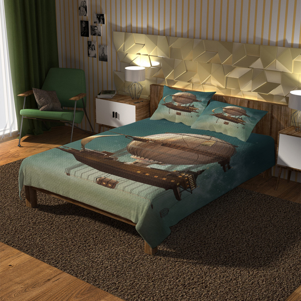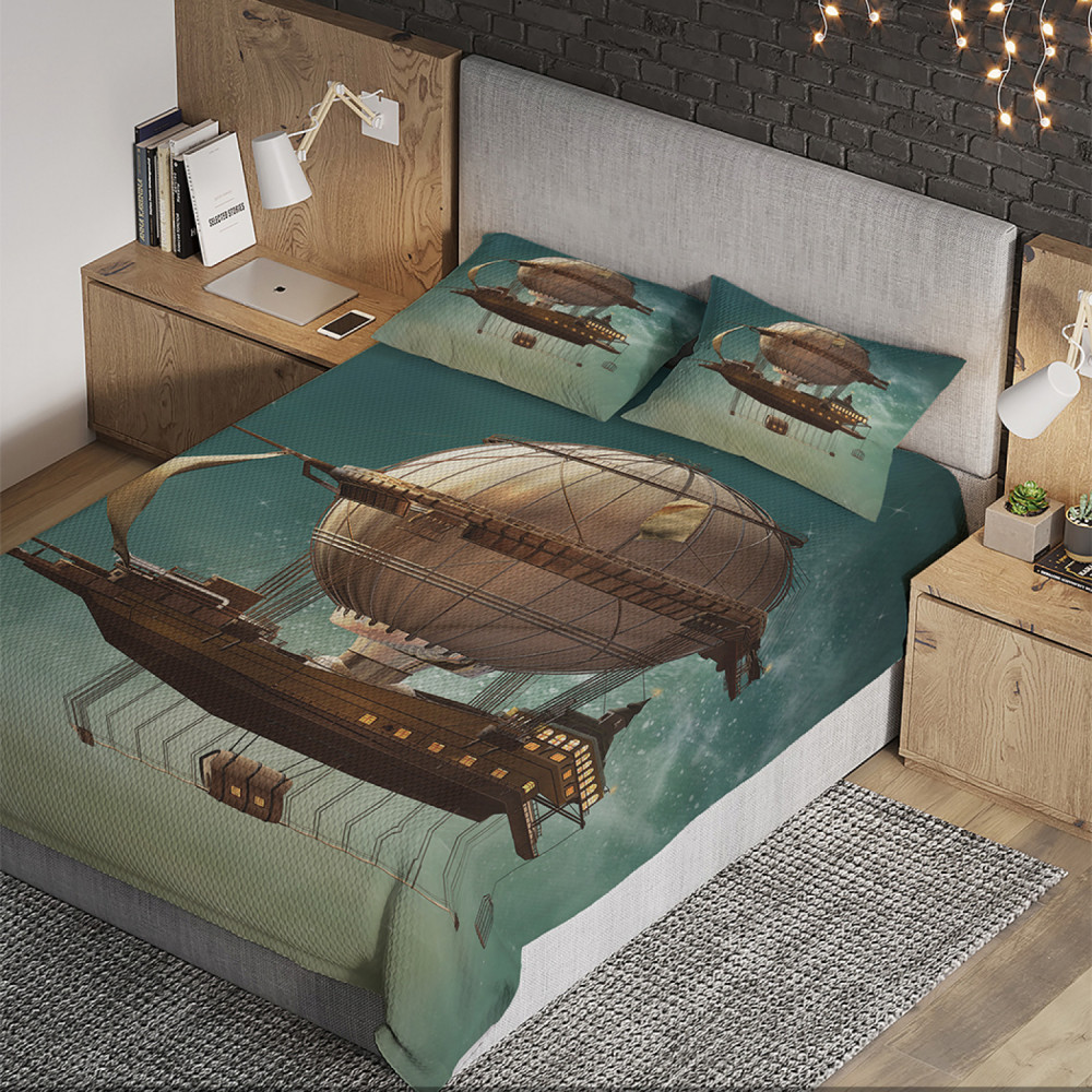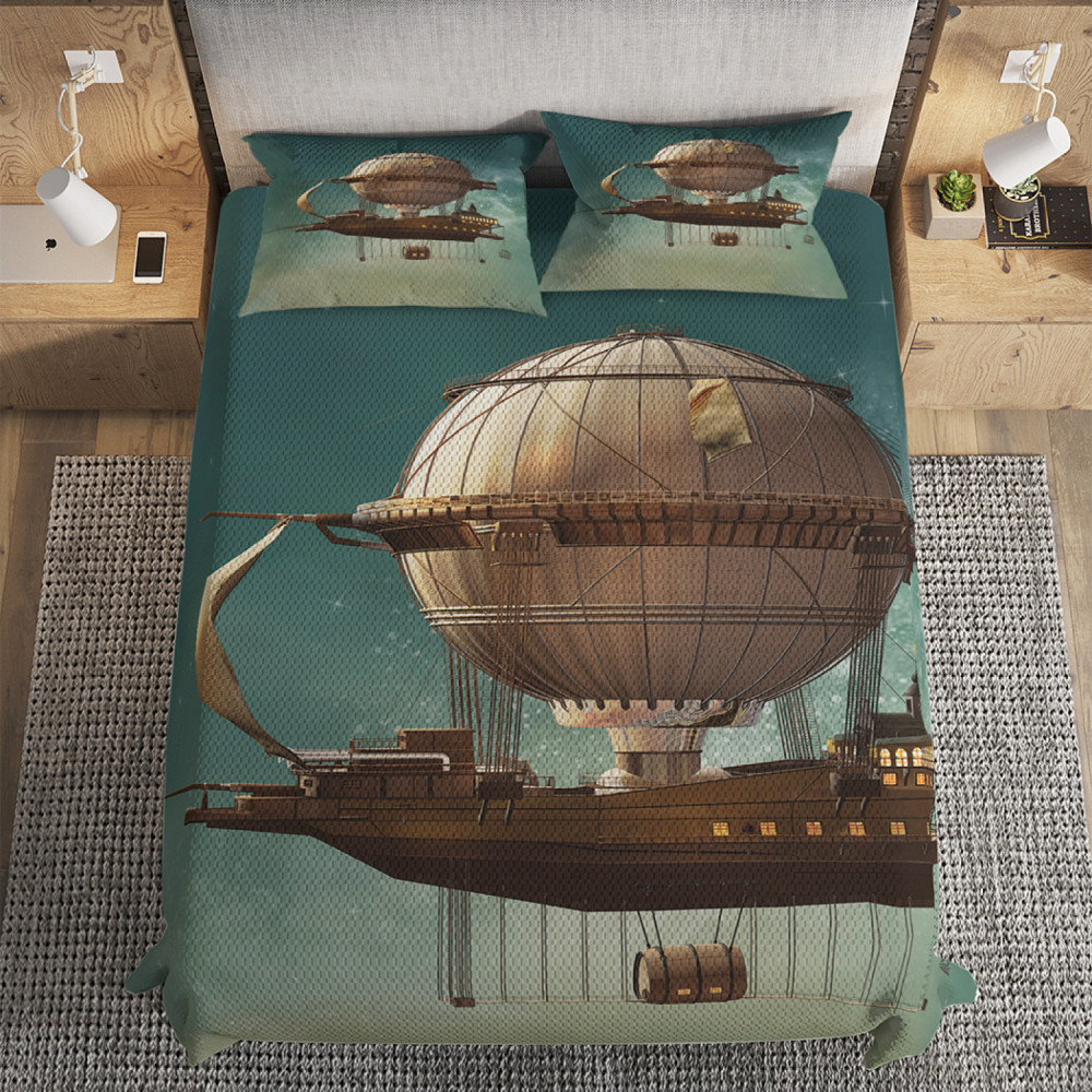 Ambesonne Набор из покрывала с наволочками «Корабль в стиле стимпанк»