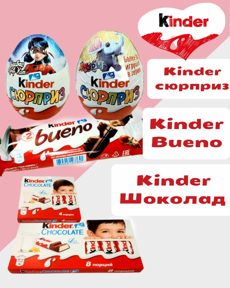 Киндеры мятые , покрытые белым налетом - лежалые на вкус , есть невозможно ( возможно разбила баночка , болтается со всем вместе по коробке, хоть и завернута ). Шоколад киндер подтаял , весь поплыл и снова усох( в отличии от киндера яйца вкус хотя бы остался ) . Очень жаль , так как куплено на подарок любимому человеку .