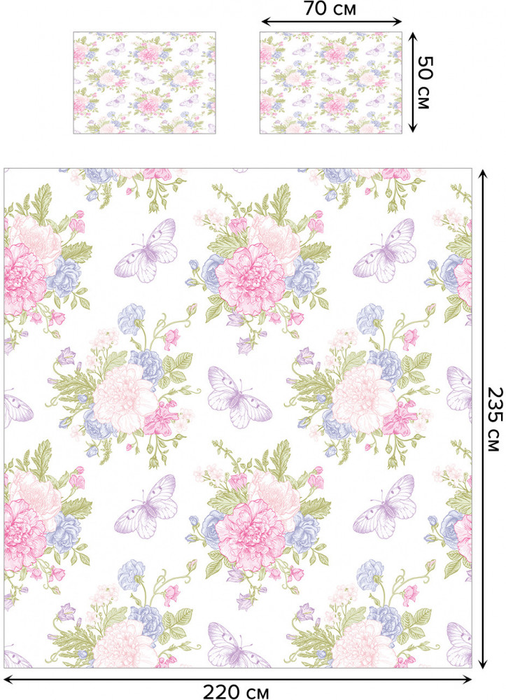 Комплектация: покрывало 160 × 220 см (1,5-спальное), наволочки 50 × 70 см — 2 шт.