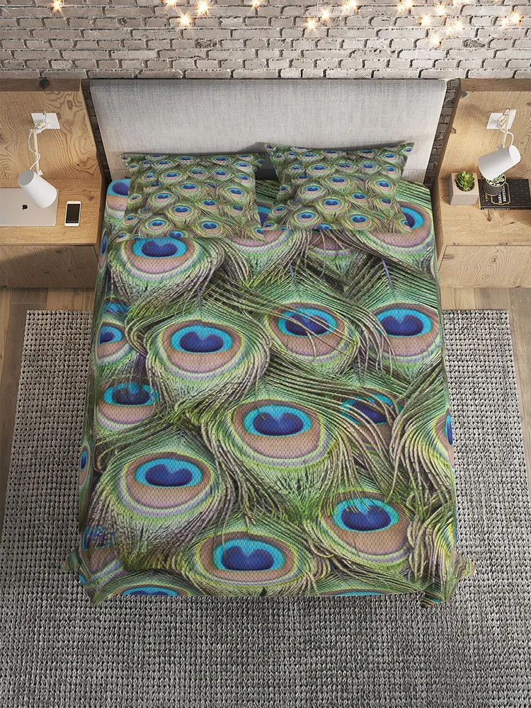 Благодаря используемым материалам, покрывало не мнется, сохраняет форму и хорошо удерживает тепло, что позволяет использовать его в качестве пледа или легкого одеяла. Вы можете создать единый стиль вашей спальни, подобрав шторы с аналогичным принтом.