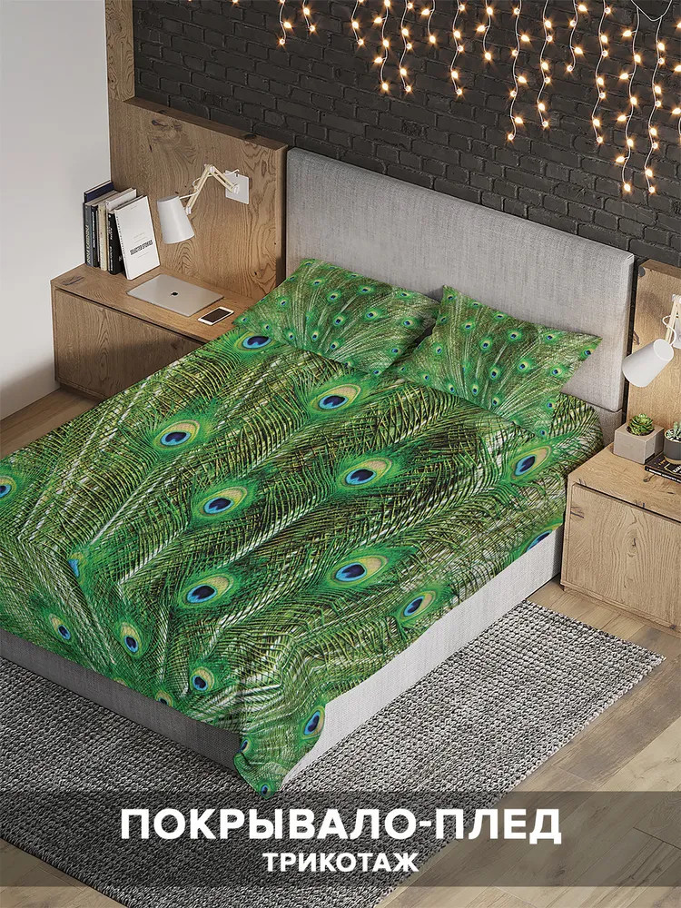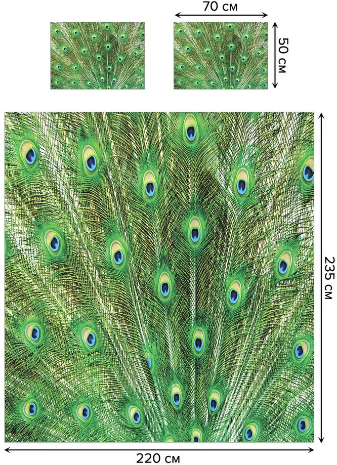 Ambesonne Покрывало с наволочками «Бескрайний павлиний хвост»