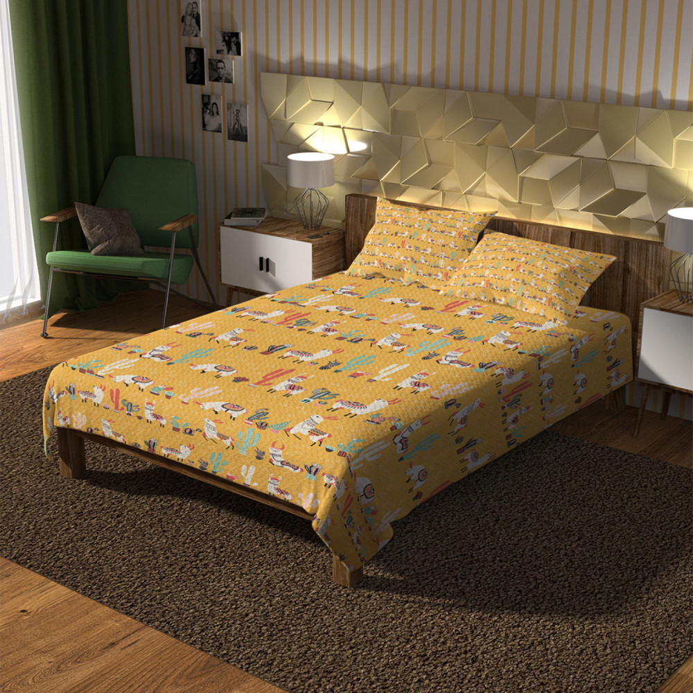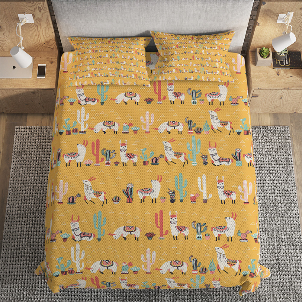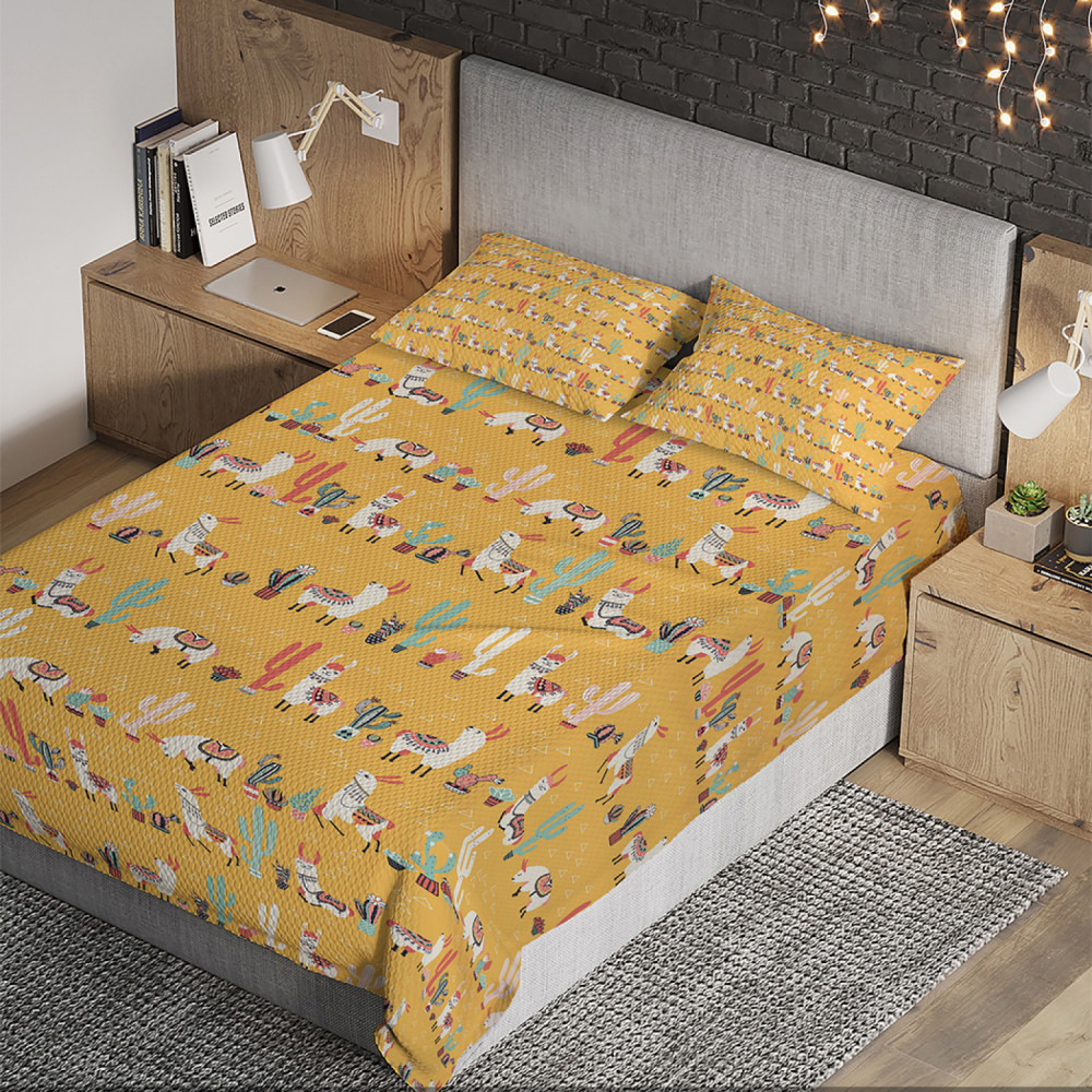 Ambesonne Покрывало стеганое с наволочками «Лама под кактусом»