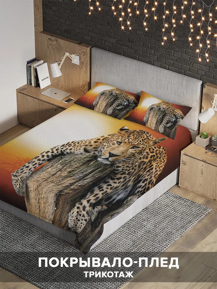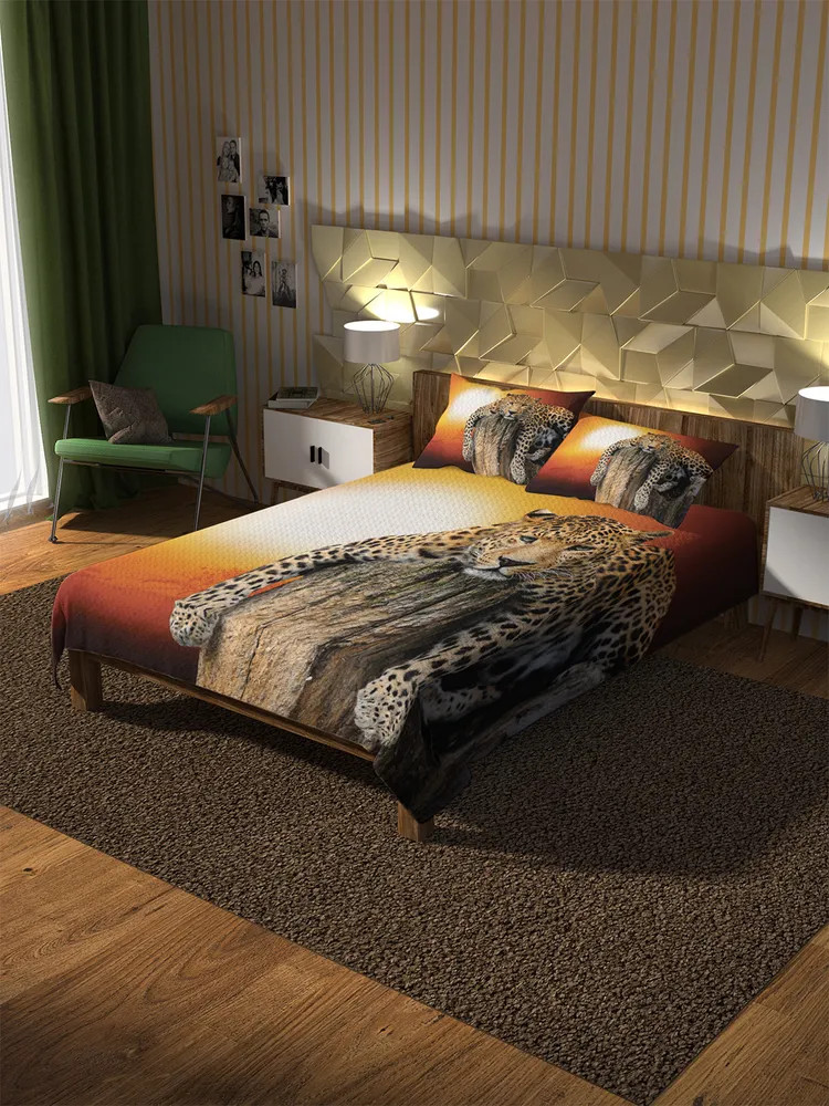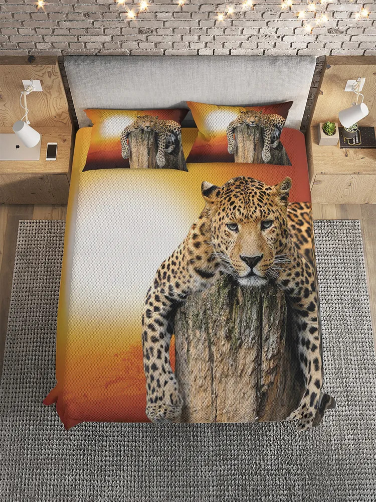 Ambesonne Покрывало с наволочками «Леопард на закате»
