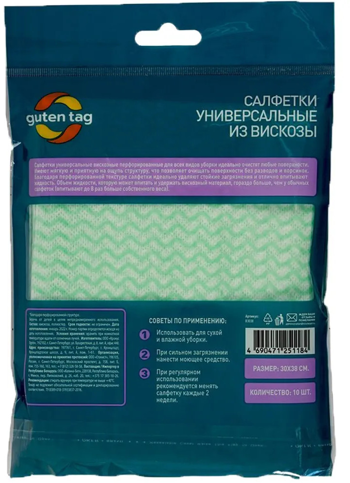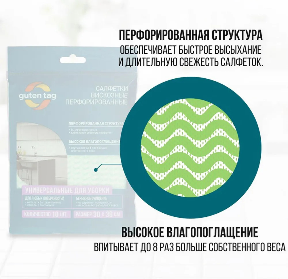 Guten Tag Набор салфеток универсальных для уборкиВ данный момент этот товар отсутствует в продаже. Возможно, у нас найдется аналогичный или похожий товар здесь. Салфетки универсальные вискозные перфорированные предназначены для сухой и влажной уборки всех видов поверхностей ( кафель, сантехника, мебель, бытовая техника и проч.). Салфетки имеют мягкую и приятную на ощупь структуру, что позволяет очищать поверхности без царапин, разводов и ворсинок. Благодаря перфорированной структуре салфетки идеально удаляют стойкие загрязнения и отлично впитывают жидкость. |