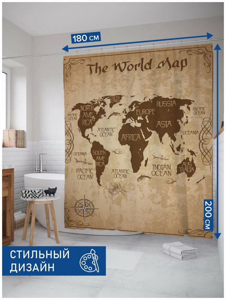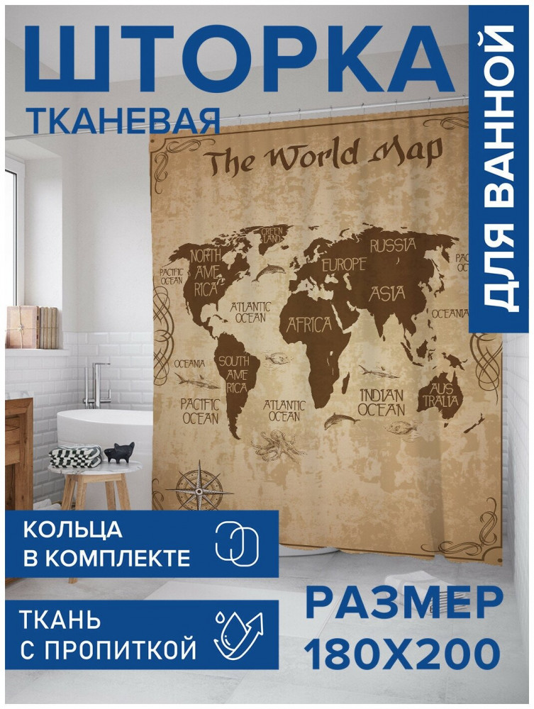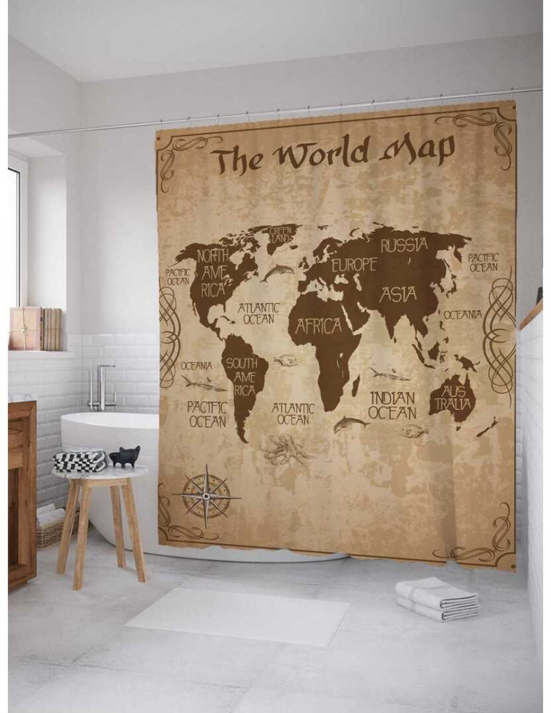 Отверстия под крючки не имеют люверсов/утяжелителей и обработаны оверлоком. Современная текстильная штора для душа комплектуется 12 крючками-кольцами из пластика, предназначенных для штанги и карниза. Рисунок нанесен на внешнюю сторону изделия с помощью сублимационной печати. Такие принты не боятся влаги, не смываются под горячей водой и не потускнеют со временем. Обратная сторона изделия — белая.