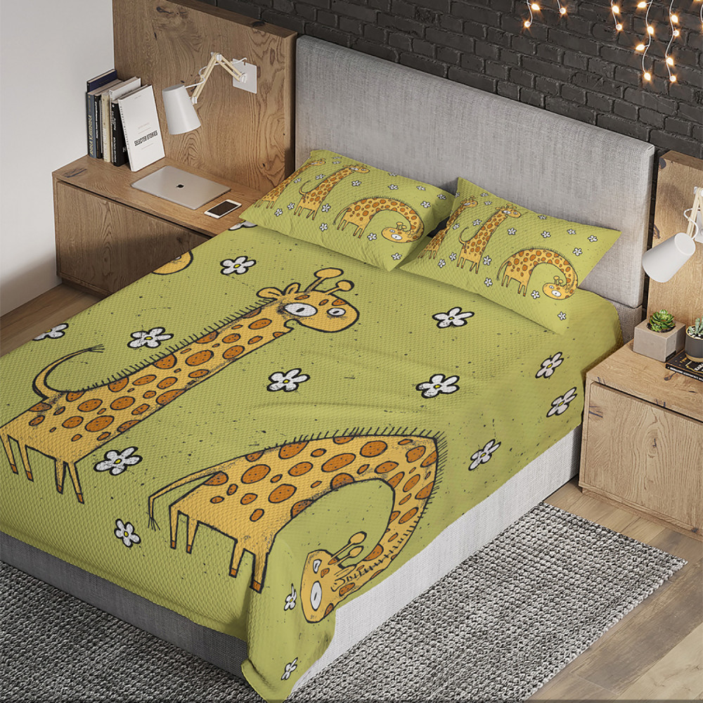 Ambesonne Набор из покрывала с наволочками «Три жирафа»