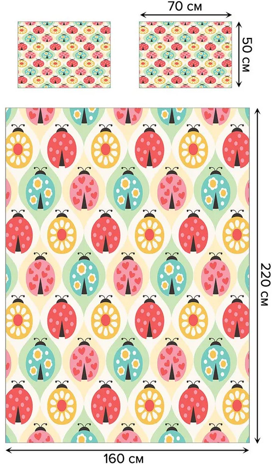 Серия: Божьи коровки с узорами Постельное белье изготовлено из мягкой и приятной на ощупь ткани с эффектом Soft Touch, состоящей из 30% хлопка и 70% полиэстера. Изделия из такого материала обладают повышенной износостойкостью, гипоаллергенными и дышащими свойствами, а также легко стираются и практически не мнутся. Принт нанесен на изделие с помощью сублимационной печати, благодаря чему рисунок сохраняет яркость вне зависимости от количества стирок. |