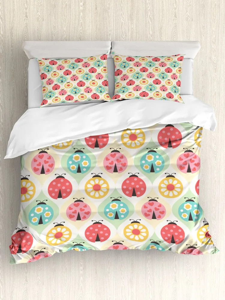 Ambesonne Комплект постельного белья «Божьи коровки с узорами»-25%