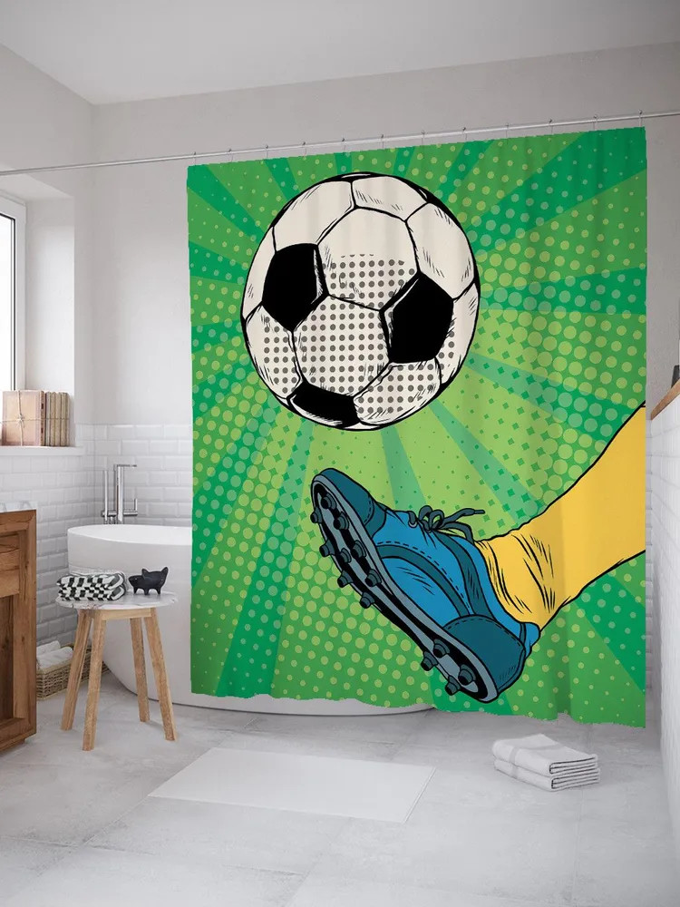 Отверстия под крючки не имеют люверсов/утяжелителей и обработаны оверлоком. Современная текстильная штора для душа комплектуется 12 крючками-кольцами из пластика, предназначенных для штанги и карниза. Рисунок нанесен на внешнюю сторону изделия с помощью сублимационной печати. Такие принты не боятся влаги, не смываются под горячей водой и не потускнеют со временем. Обратная сторона изделия — белая.