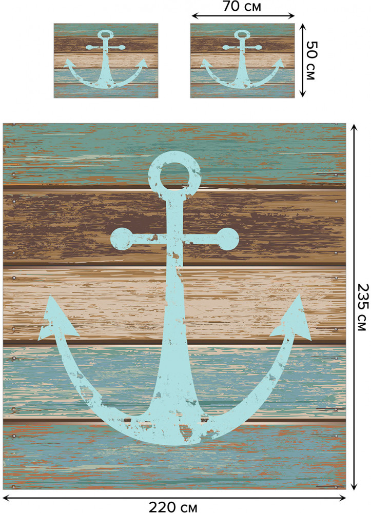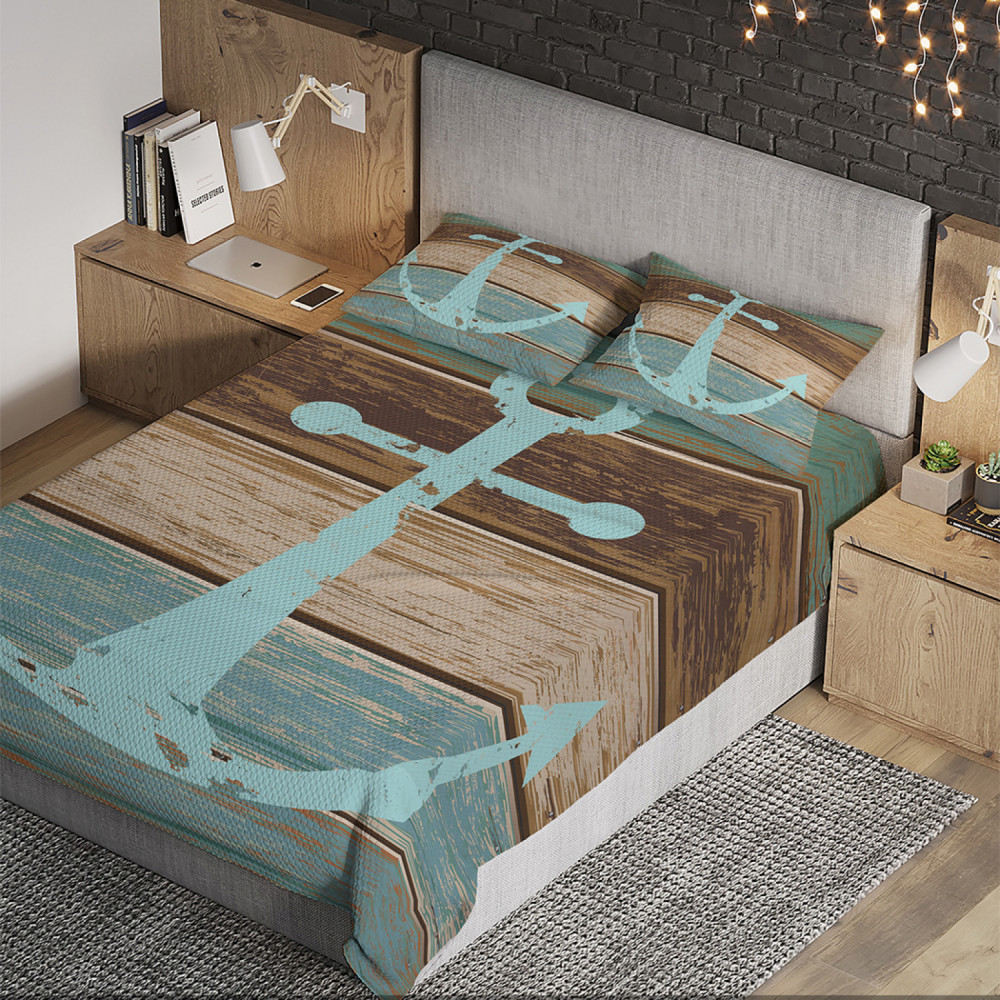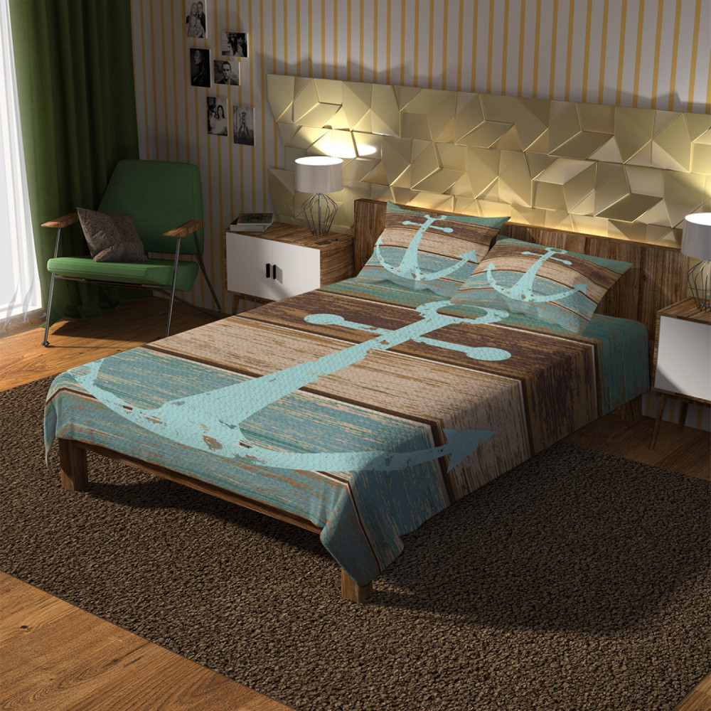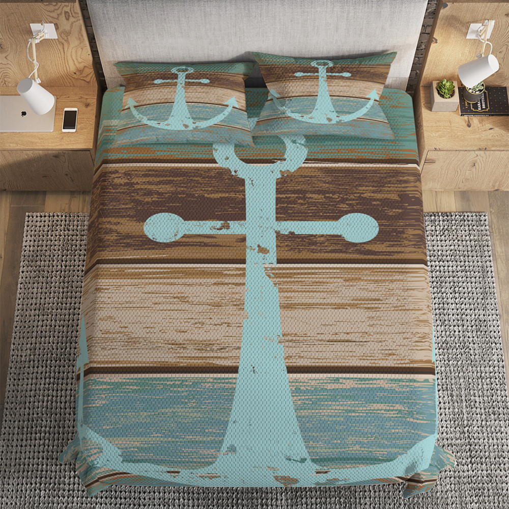 Ambesonne Набор из покрывала с наволочками «Потертый якорь на досках»