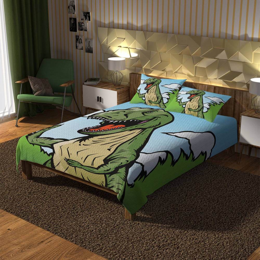 Ambesonne Набор из покрывала с наволочками «Нарисованный тиранозавр»