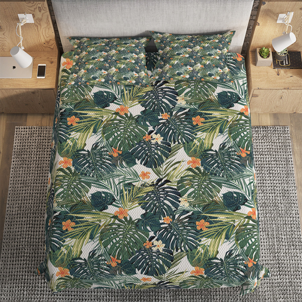 Ambesonne Набор из покрывала с наволочками «Тропические листья»
