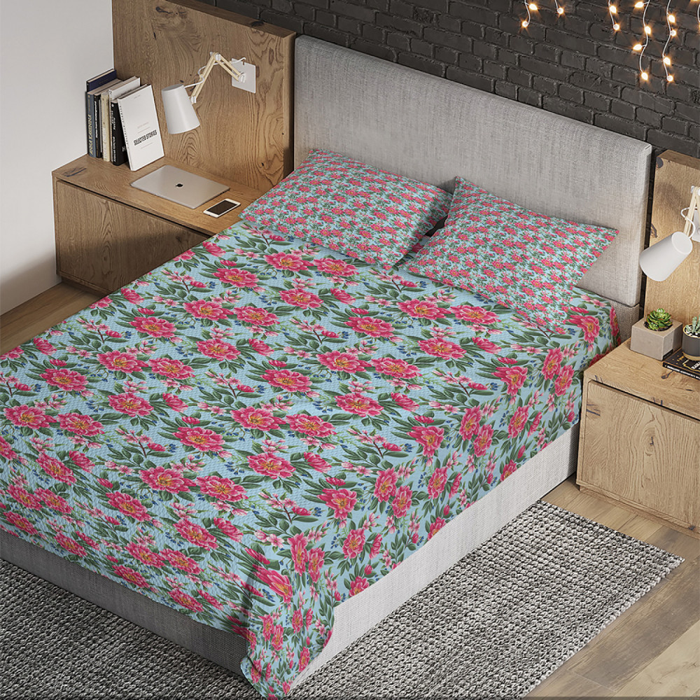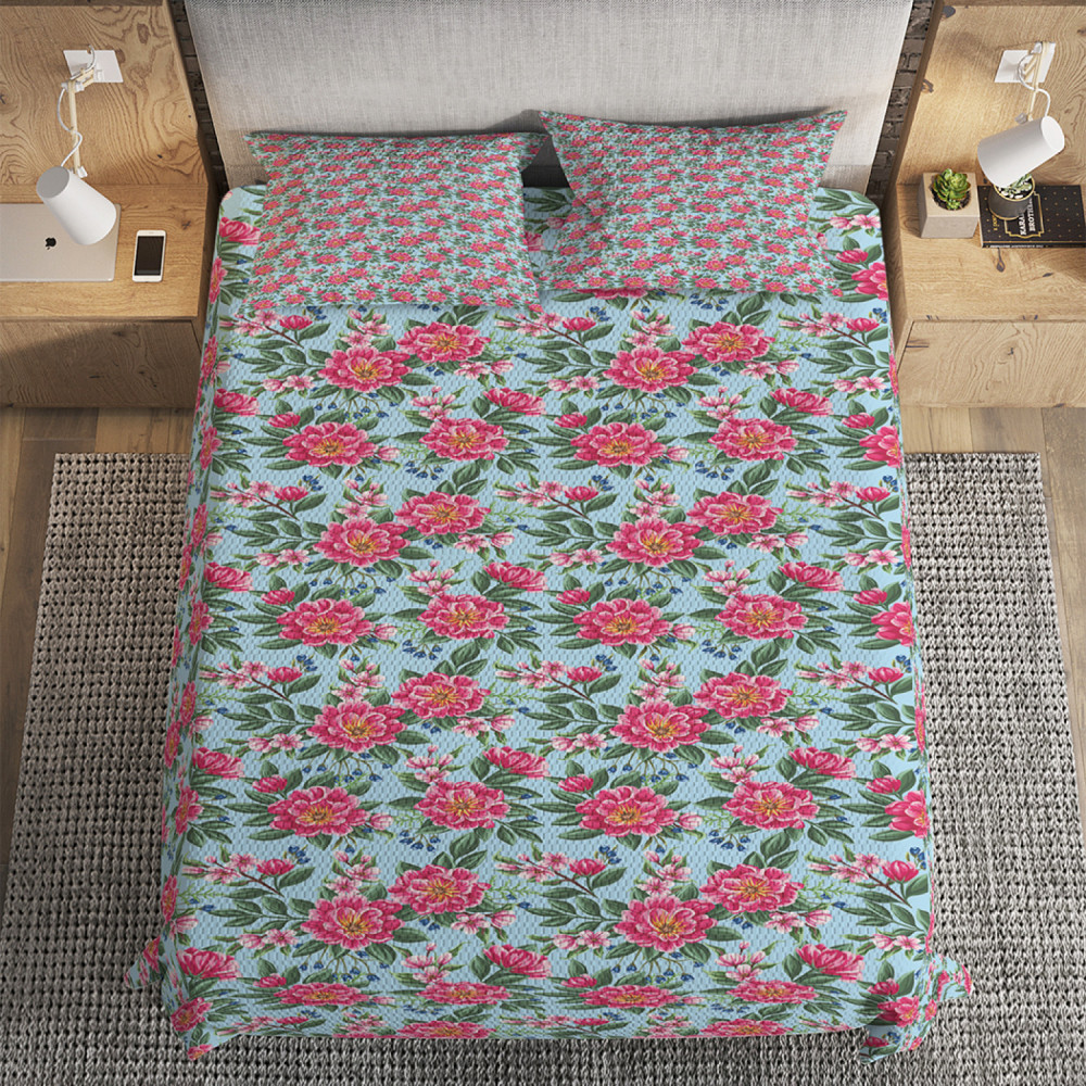 Ambesonne Покрывало стеганое с наволочками «Пёстрые малиновые цветы»