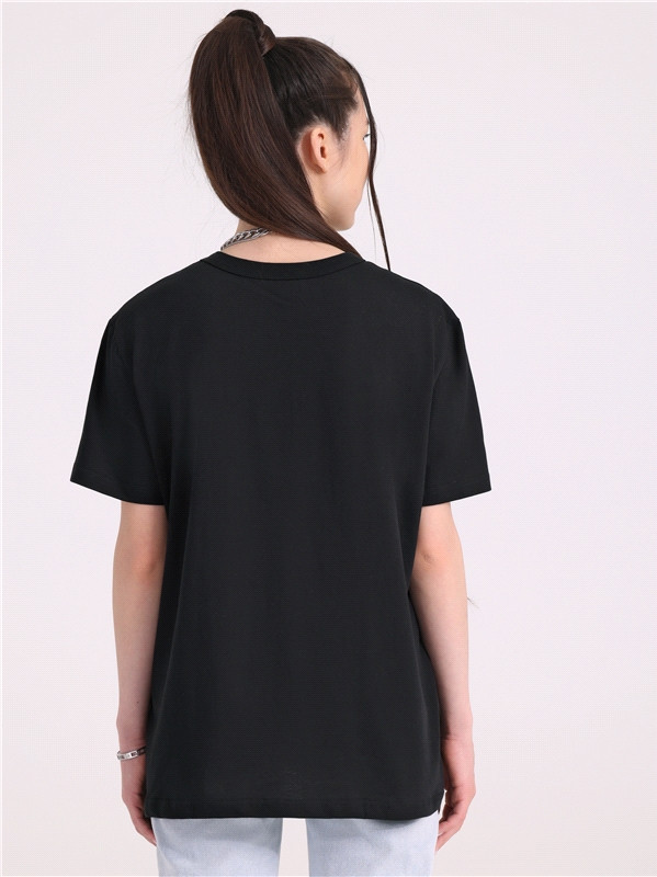 Заказывала 48 разм.,но оказалась большая . Футболка длинная,заканчивается на середине бедра,плечевые швы ниже плеча.Я думаю на 50 р.или даже на 52 р.будет хорошо смотреться.