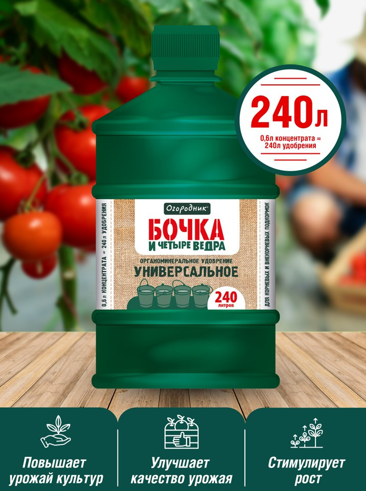 💳 Оплатить за товар можно при получении 🇰🇿 Есть бесплатная доставка по Казахстану от 1 дня 🎁 Копите бонусы с каждой покупки Серия: Бочка и четыре ведра Органоминеральное удобрение для подкормок овощных, плодовых, ягодных и декоративно-цветочных культур. Обеспечивает равномерное распределение питательных веществ в почве и быстрый доступ к растениям. Повышает урожайность культур, улучшает их качество. Повышает лежкость урожая. Повышает иммунитет к различным заболеваниям и к неблагоприятным факторам внешней среды. |