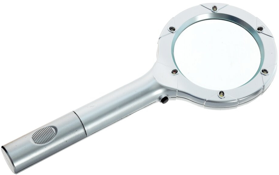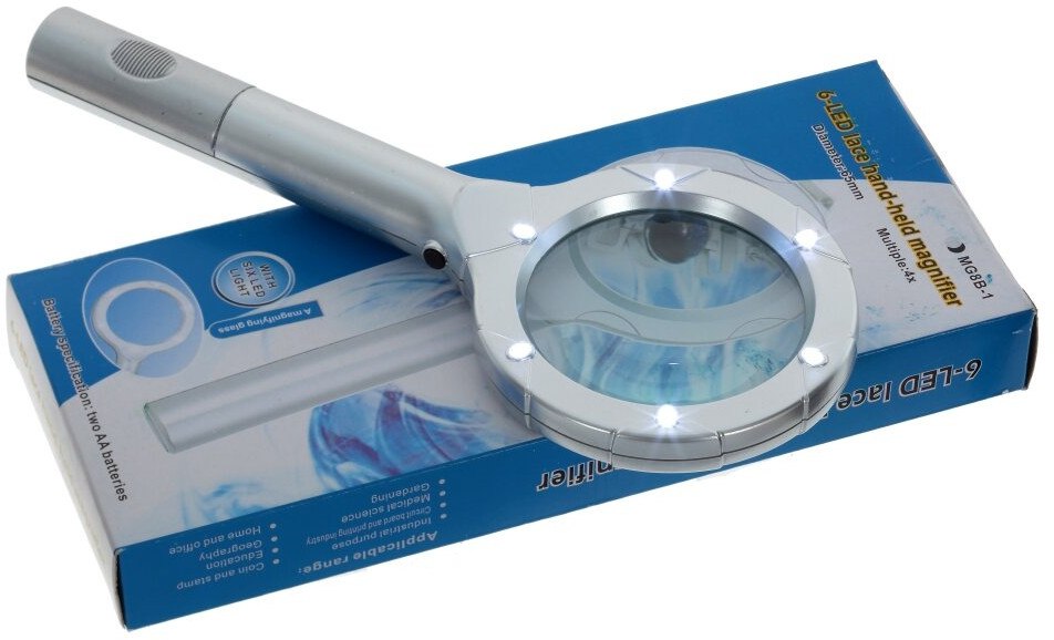Очень мощная подсветка, когда читаешь текст на глянцевых поверхностях блики. Вообщем хорошая лупа, не совсем лёгкая с удобной ручкой.