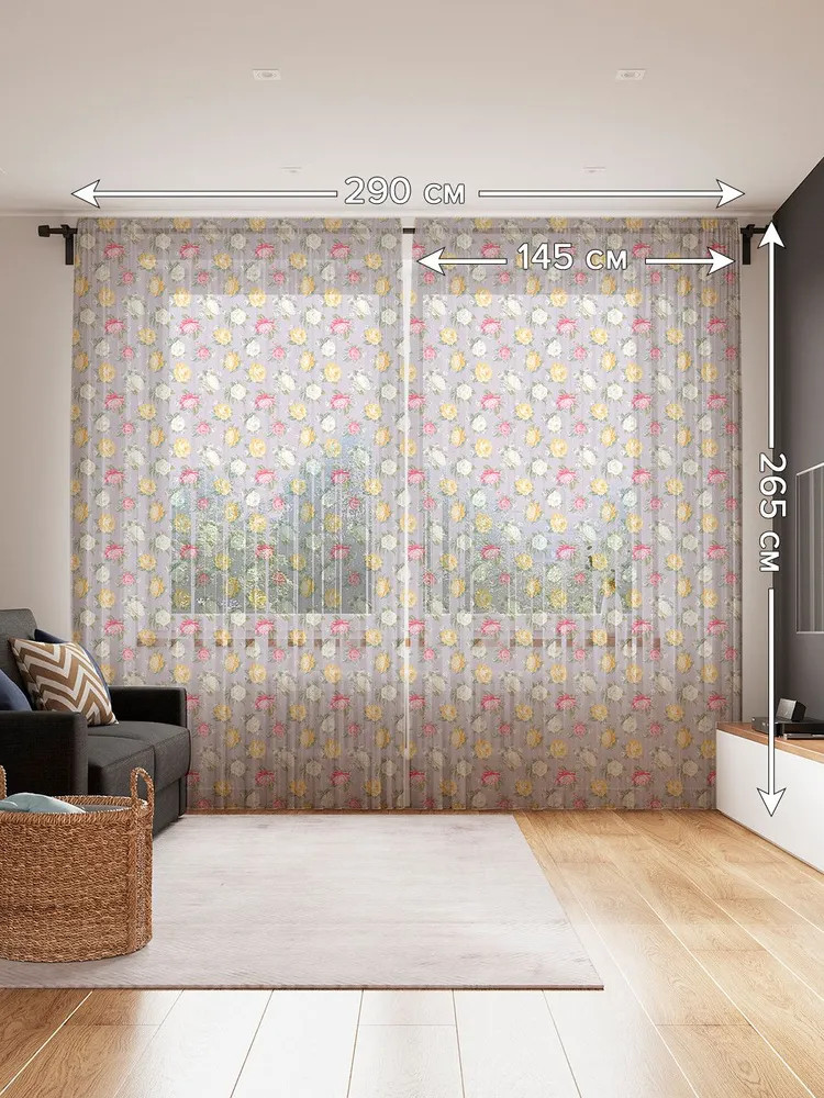 JoyArty Комплект тюлей «Теплые розы на сером фоне»