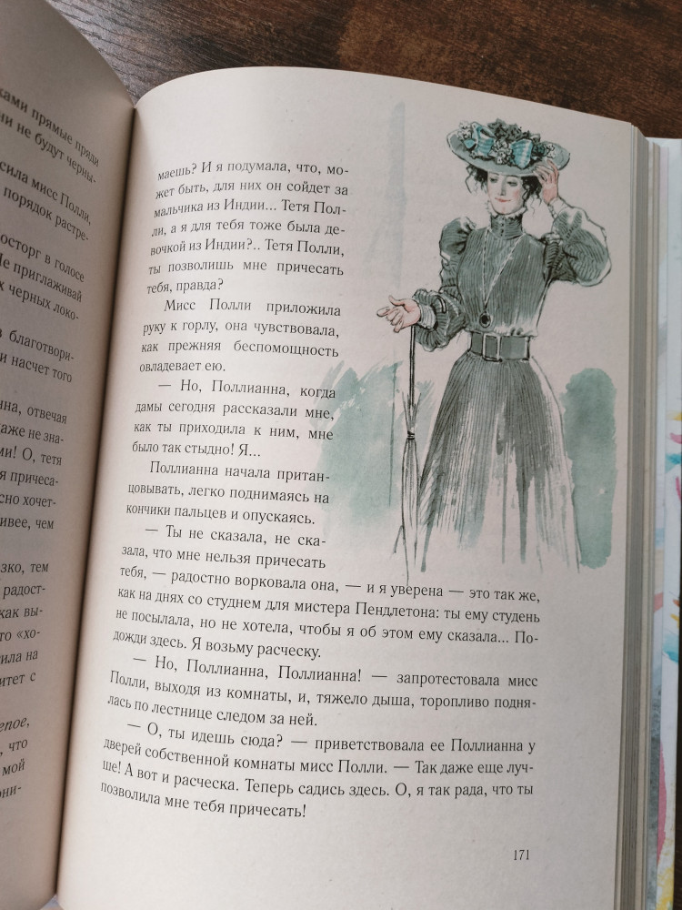 Отличная книга для воспитания детей. В наше время, особенно важно прививать детям чувство благодарности и довольства тем, что у них есть. Пример Поллианны, затрагивает до глубины души. Некоторые фрагменты хочется перечитывать не раз. Особенность книги в том, что можно сделать паузу и поразмышлять с сыном (7 лет) над тем, чему можно научится у героев повести. Спасибо вашему интернет магазину, что у вас можно купить, по-настоящему стоящую, книгу в отличном переплете и живыми иллюстрациями.