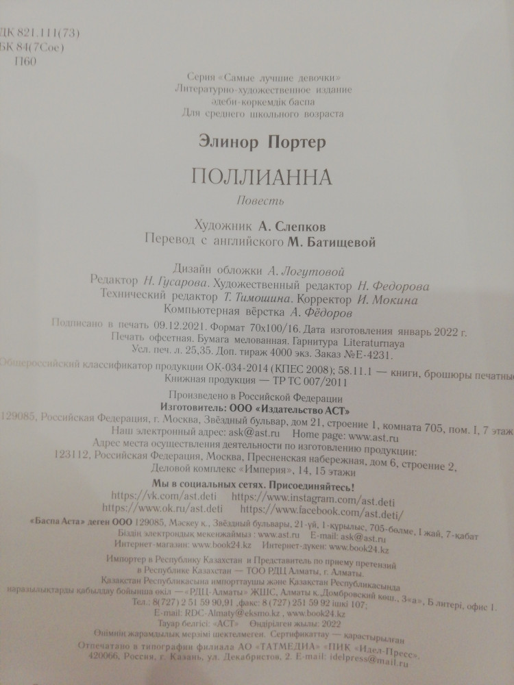 Книга очень понравилась и мне, и дочери (8 лет). Читается легко. Теперь дочь просит продрлжение историй о Поллианне. И только в таком же печатном исполнении.