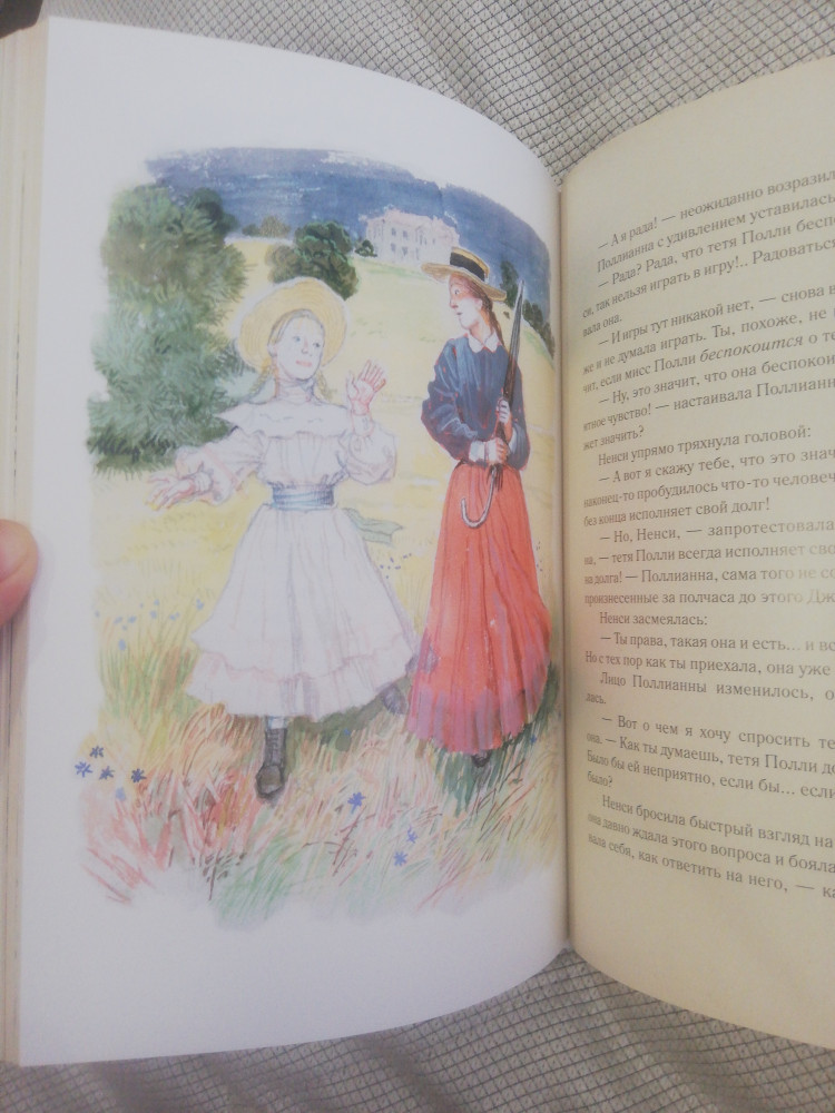 Книга замечательная!!! Очень красивые иллюстрации, передающие дух того времени. Бумага лощенная, плотная. По содержанию тоже интересна. Думаю, читатель любого возраста найдет в ней для себя что-то полезное и начнет вместе с Полианной играть в ее игру в радость!