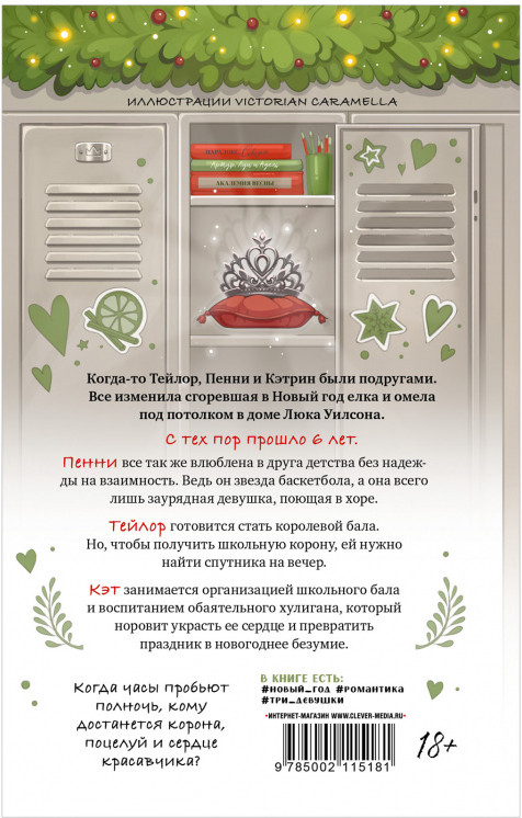 Серия: #trendbooks Когда‑то Тейлор, Пенни и Кэтрин были подругами. Все изменила сгоревшая в Новый год елка и омела под потолком в доме Люка Уилсона. С тех пор прошло шесть лет. Пенни все так же влюблена в друга детства без надежды на взаимность. Ведь он звезда баскетбола, а она всего лишь заурядная девушка, поющая в хоре.Тейлор готовится стать королевой бала. Но, чтобы получить школьную корону, ей нужно найти спутника на вечер. Кэт занимается организацией школьного бала и воспитанием обаятельного хулигана, который норовит украсть ее сердце и превратить праздник в новогоднее безумие. Когда часы пробьют полночь, кому достанется корона, поцелуй и сердце красавчика? |