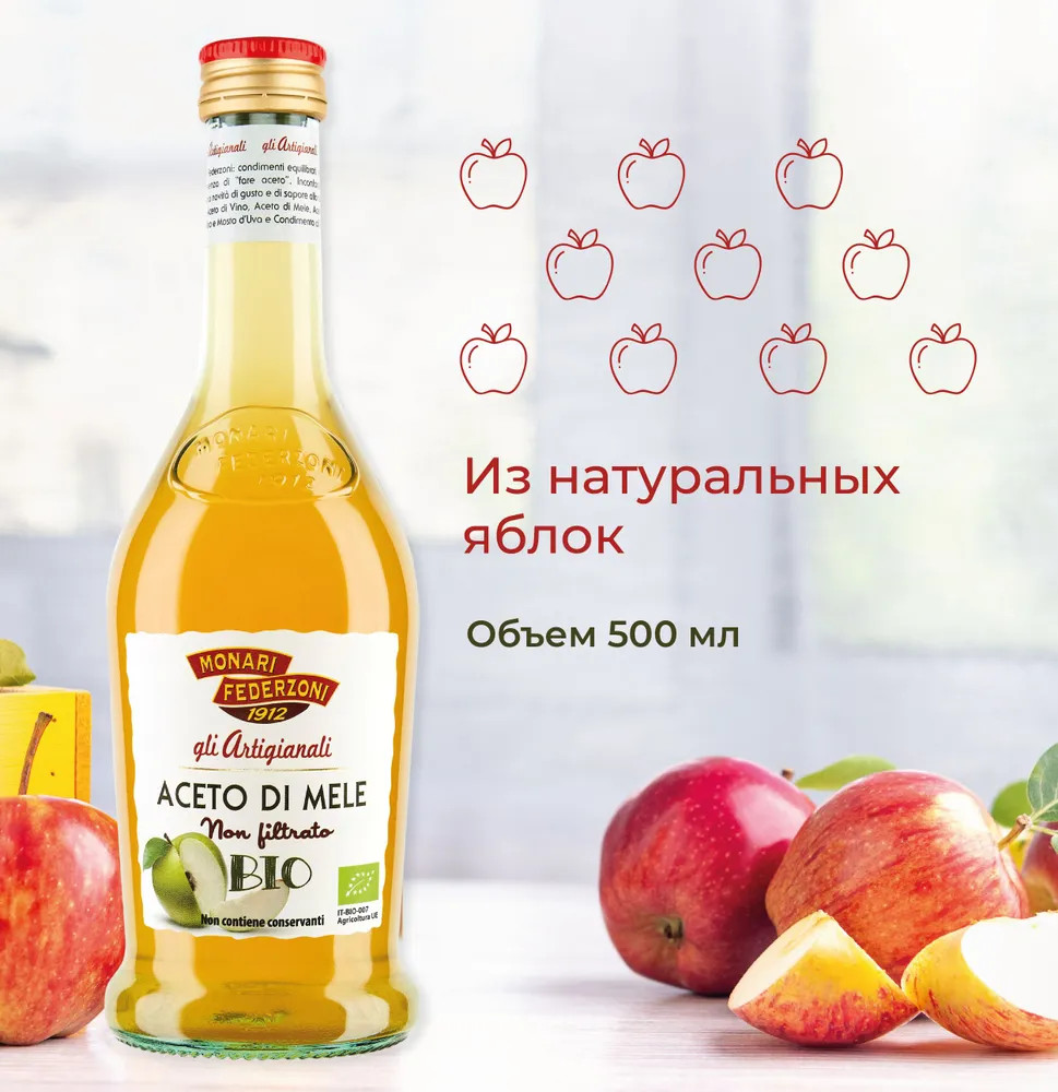 Monari Federzoni Уксус яблочный нефильтрованный 5% «Aceto di mele bio»+159 хорошее качество натуральный полезный