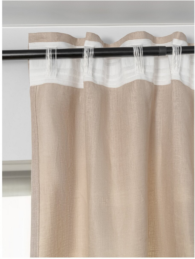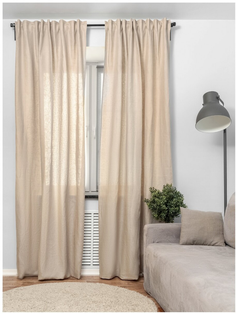 Универсальная тесьма позволяет легко повесить интерьерные шторы на любое крепление, будь то карниз с шторной лентой для крючков или кулиска для трубы. Вы также можете использовать гардинные карнизы или шины. Тесьма по верхнему краю позволяет создавать элегантные складки с помощью гардинных крючков. Шторы можно вешать, пропуская карниз через потайные петли, или с помощью колец и крючков. Наши льняные однотонные портьеры имеют минималистичный дизайн в современном скандинавском стиле, что позволяет им вписаться в любой интерьер. Они легкие, качественные и идеально подходят для использования в гостиной, зале, прихожей, кабинете, офисе, примерочной, на даче, лоджии, веранде или на балконе. Крючки, кольца и зажимы не входят в комплект.