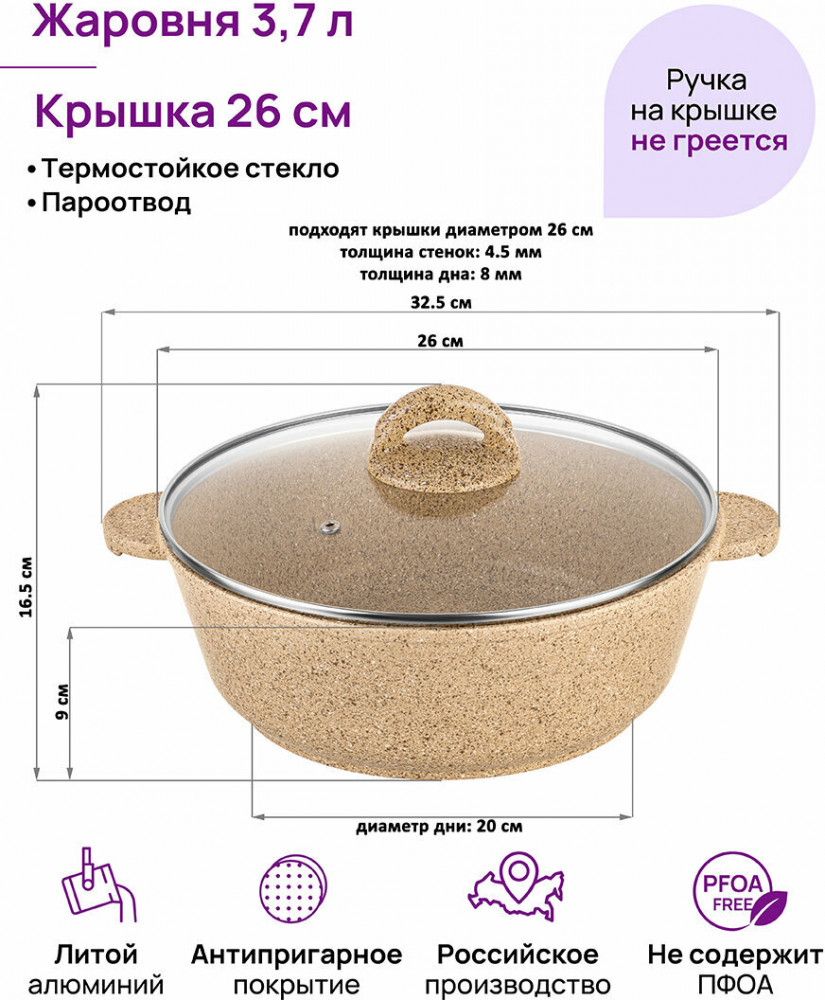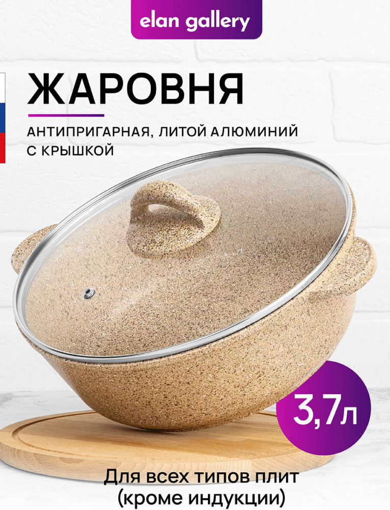Elan Gallery Сотейник с крышкой «Медовый гранит»