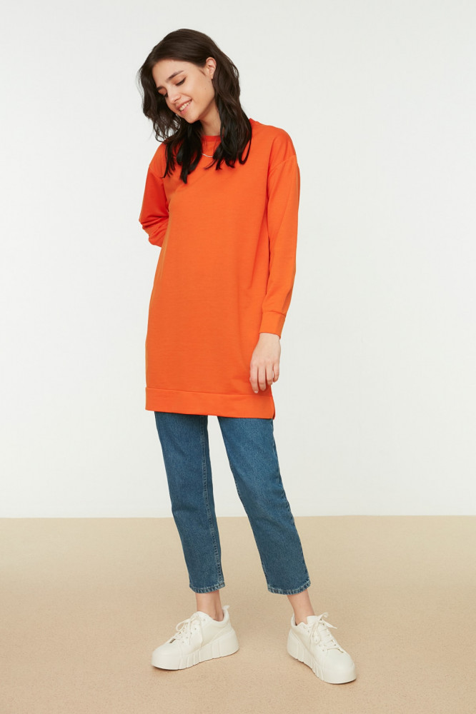 Длинный, как платье. Ношу с лосинами, с джинсами показалось неудобно. Не очень тёплый