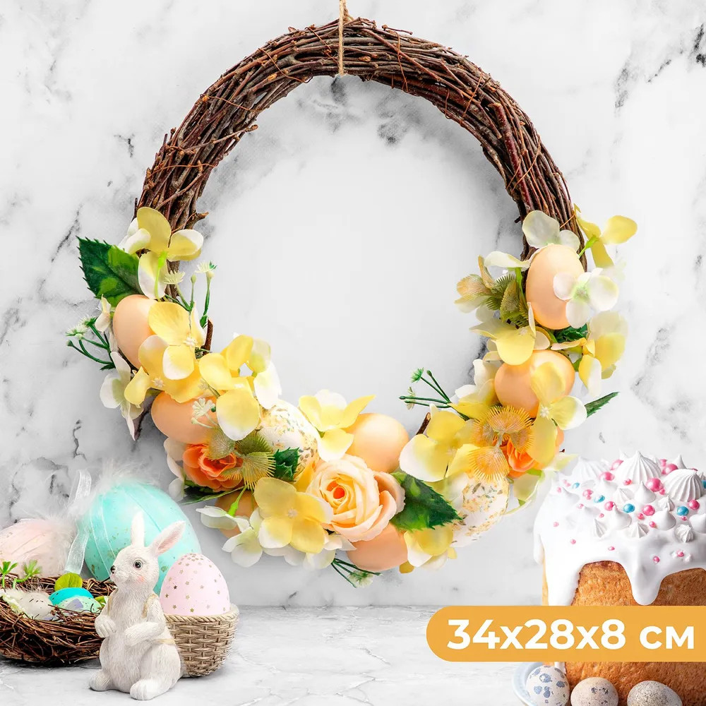 💳 Оплатить за товар можно при получении 🇰🇿 Есть бесплатная доставка по Казахстану от 1 дня 🎁 Копите бонусы с каждой покупки Пасхальное украшение «Весеннее цветение» принесет в ваш дом атмосферу тепла, радости и уюта. Круглая форма венка символизирует бесконечный круг жизни и вечного возрождения. Декор в виде пасхальных яиц на венке выполнен из пенопласта. Плетёный венок имеет петельку для подвешивания из веревочки, благодаря которой его удобно разместить на двери или стене. Украшен веточками, искусственными цветами и пасхальными яйцами в белых и жёлтых тонах. Все содержимое венка закреплено на прочной основе. Подарите вашему дому атмосферу тепла, радости и весны, украсив дом интересным пасхальным венком! |