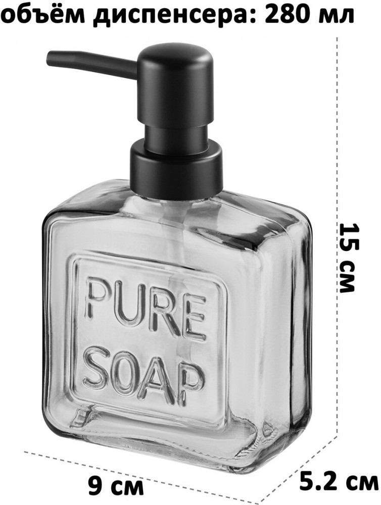 Красивый дозатор из стекла, размер хороший и не огромный и не маленький. Советую к покупке.