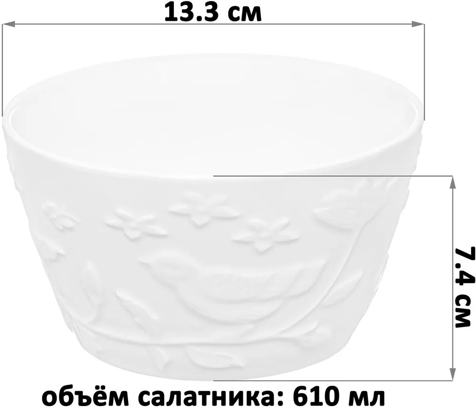 💳 Оплатить за товар можно при получении 🇰🇿 Есть бесплатная доставка по Казахстану от 1 дня 🎁 Копите бонусы с каждой покупки Серия: Птички на ветке Набор из двух салатников Elan Gallery «Птички на ветке» выполнен из белого фарфора с рельефным узором. Используйте глубокие тарелочки для любых закусок и угощения гостей на празднике или вечеринке. Подойдут не только для салатов, можно использовать для сервировки любых сладостей, например, конфет или печенья. Положите в фарфоровую ёмкость кабачковую икру или свежие овощи, чтобы порадовать гостей. Можно использовать в микроволновой печи и мыть в посудомоечной машине. Поставляются в стильной картонной упаковке. Подарочные фарфоровые блюда порадуют ваших близких на любой праздник. Кухонный инвентарь с рельефным узором станет незаменимым помощником при сервировке стола и предметом декора вашего дома! |